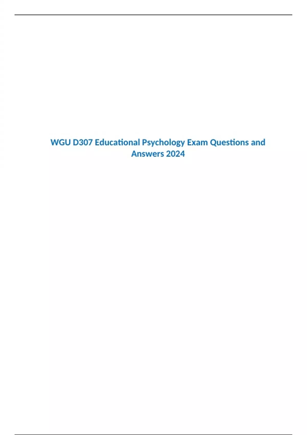 WGU D307 Educational Psychology Exam Questions and Answers 2024