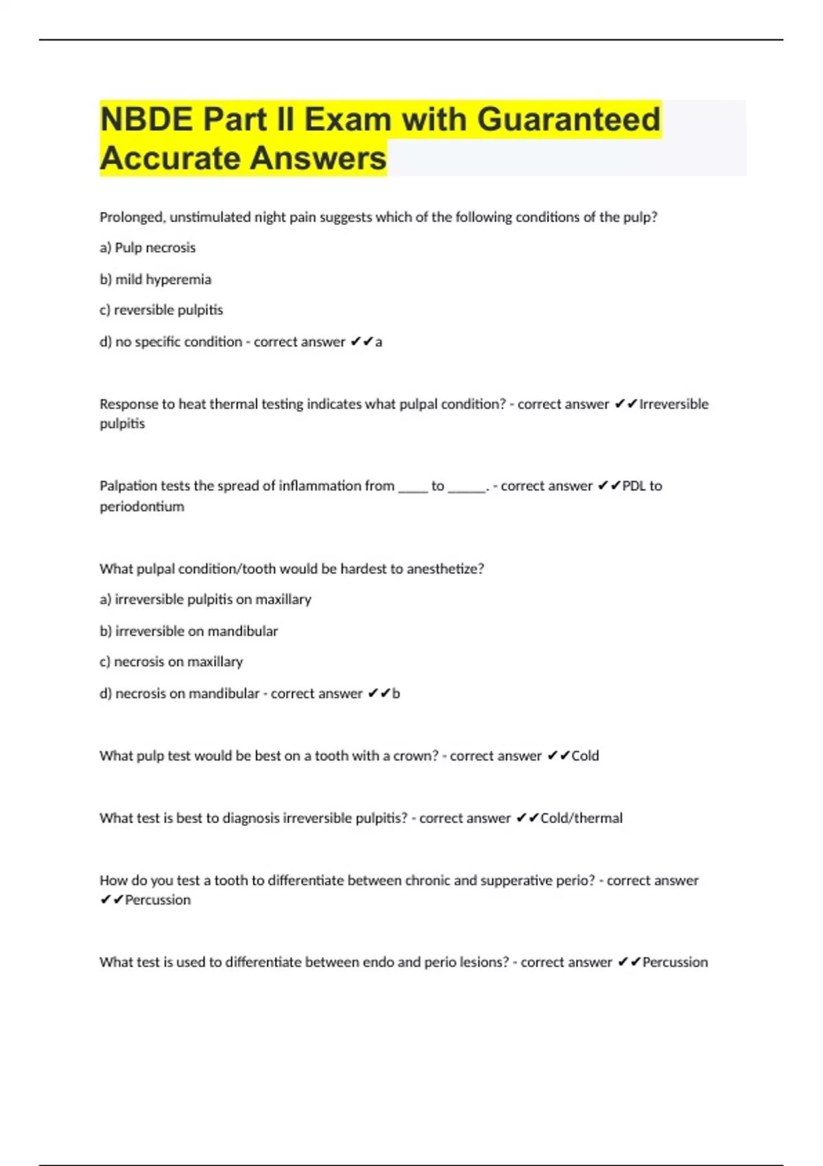 NBDE Part II Exam with Guaranteed Accurate Answers