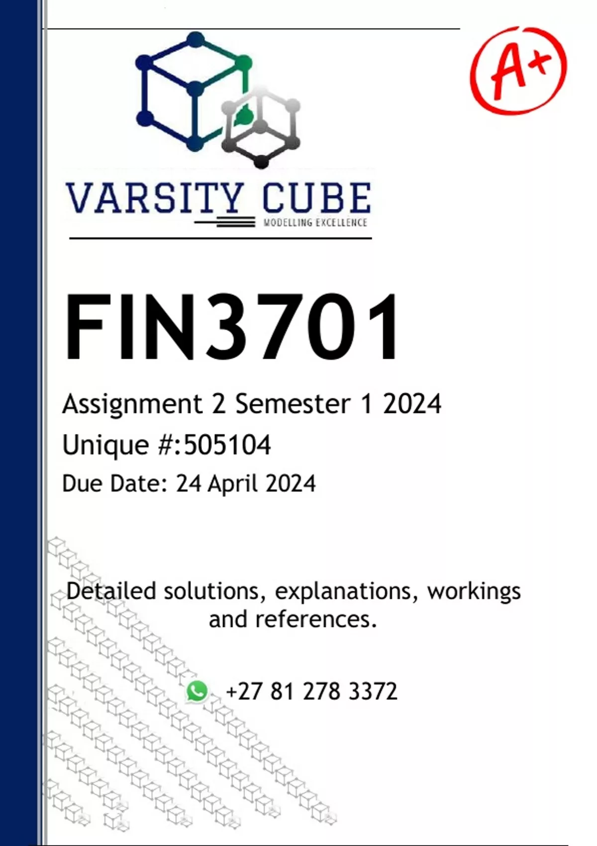 FIN3701 Assignment 2 (DETAILED ANSWERS) Semester 1 2024 - DISTINCTION GUARANTEED - DISTINCTION GUARANTEED - DISTINCTION GUARANTEED Answers, guidelines, workings and references. .................. QUESTION 1 [10 marks] Bonga currently has a portfolio of ordinary shares representing several different companies. Bonga considers it to be a well-balanced investment portfolio, but he wants to reduce the overall risk of the portfolio a bit more by including ordinary shares from Titan Mining Corporation. The following information on Titan Mining Corporation is available: For the period 2017 to 2020, the company paid the following dividends per year respectively: R3,14; R3,55; R3,89; and R3,95. The 2021 dividend is expected to increase by the average growth rate of the dividends between 2017 and 2020, and the dividend will increase by 10% per year indefinitely from 2022 onwards. Bonga requires a return of 15% on his investment portfolio and is not prepared to pay more than R52,00 per ordinary share of Titan Mining Corporation. REQUIRED: 1.1 Calculate the current price of Titan Mining Corporation’s ordinary share. (8 marks) 1.2 Should Bonga purchase Titan Mining Corporation shares to include in his investment portfolio? Provide reasons for your answer. (2 marks)