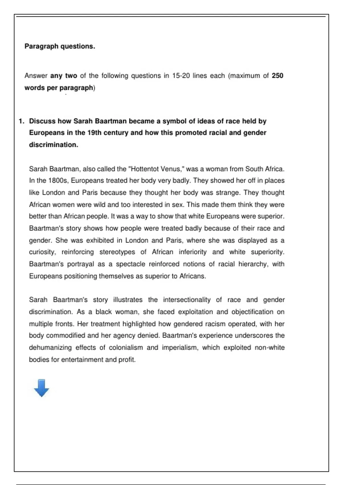 1. Discuss how Sarah Baartman became a symbol of ideas of race held by