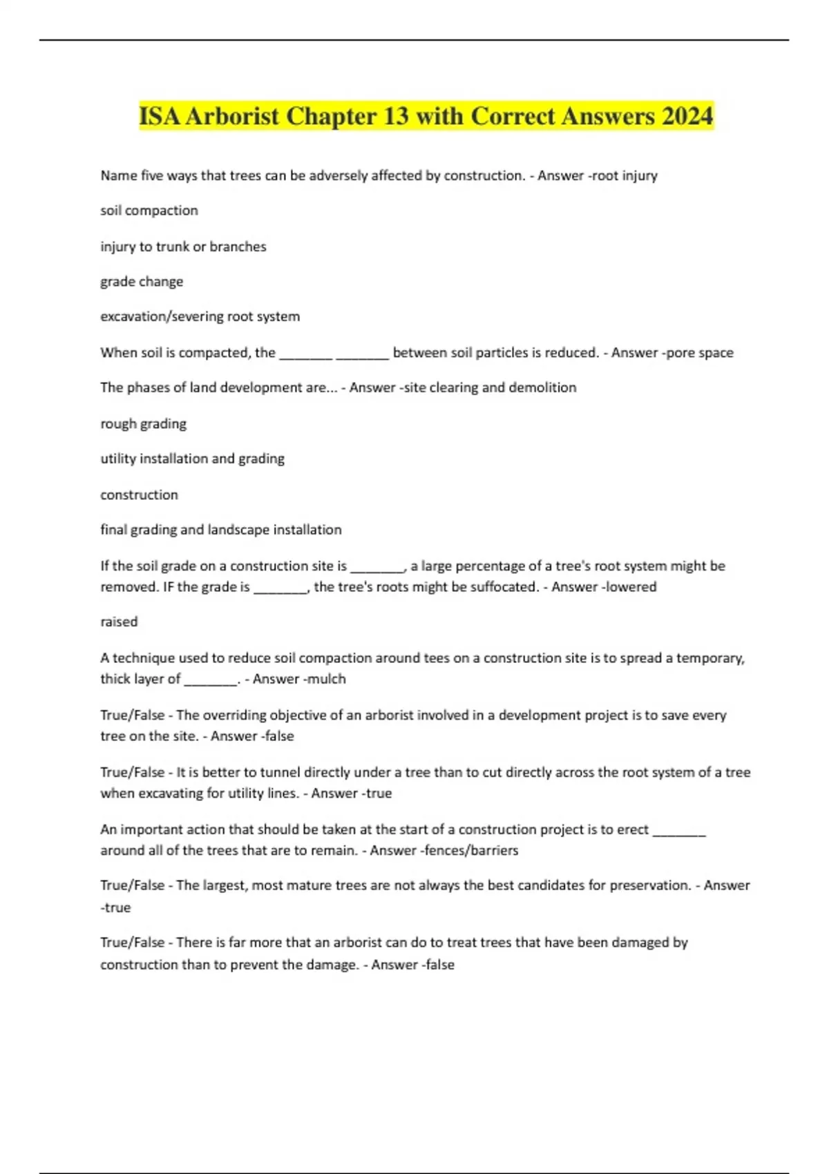 Name five ways that trees can be adversely affected by construction. - Answer -root injury