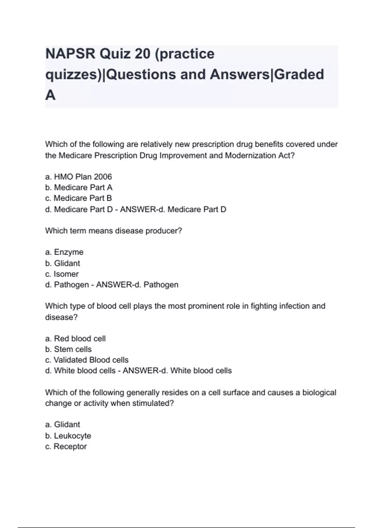 NAPSR Quiz 20 (practice quizzes)|Questions and Answers|Graded A
