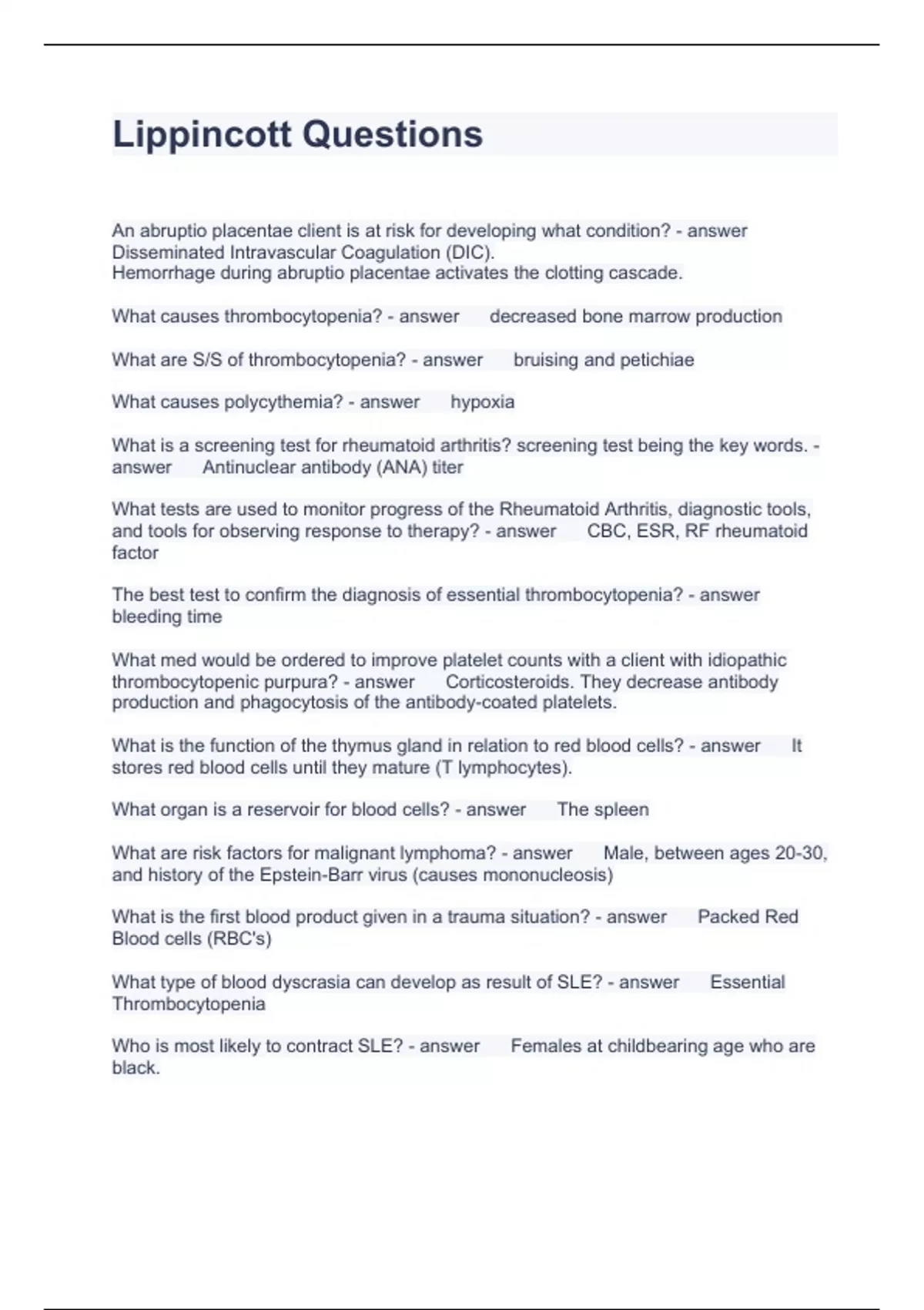 Lippincott Questions