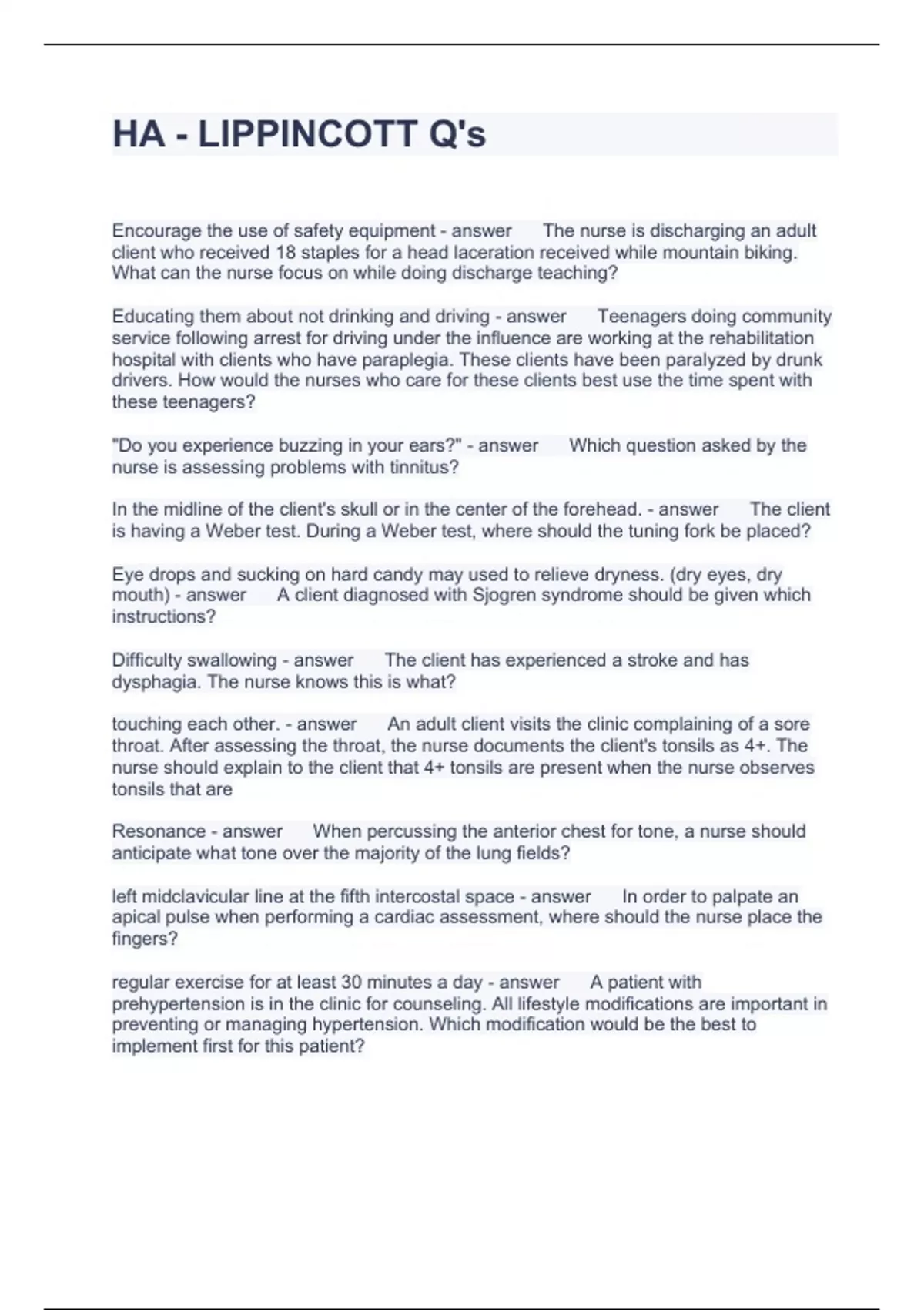 HA - LIPPINCOTT Q's Questions and Answers 2024