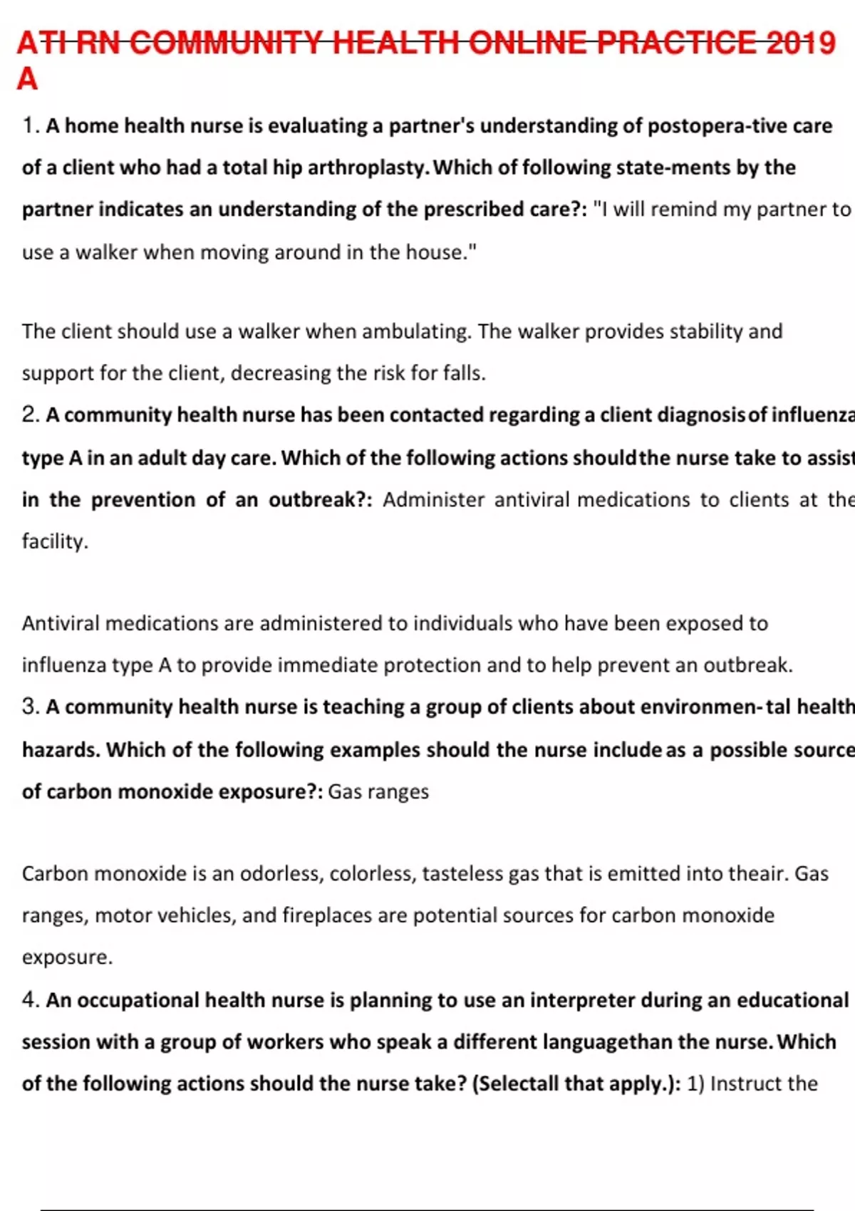 ati rn community health online practice 2019 a