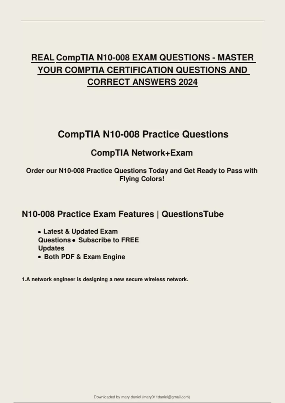 REAL CompTIA N10-008 EXAM QUESTIONS - MASTER YOUR COMPTIA CERTIFICATION QUESTIONS AND CORRECT ANSWERS 2024