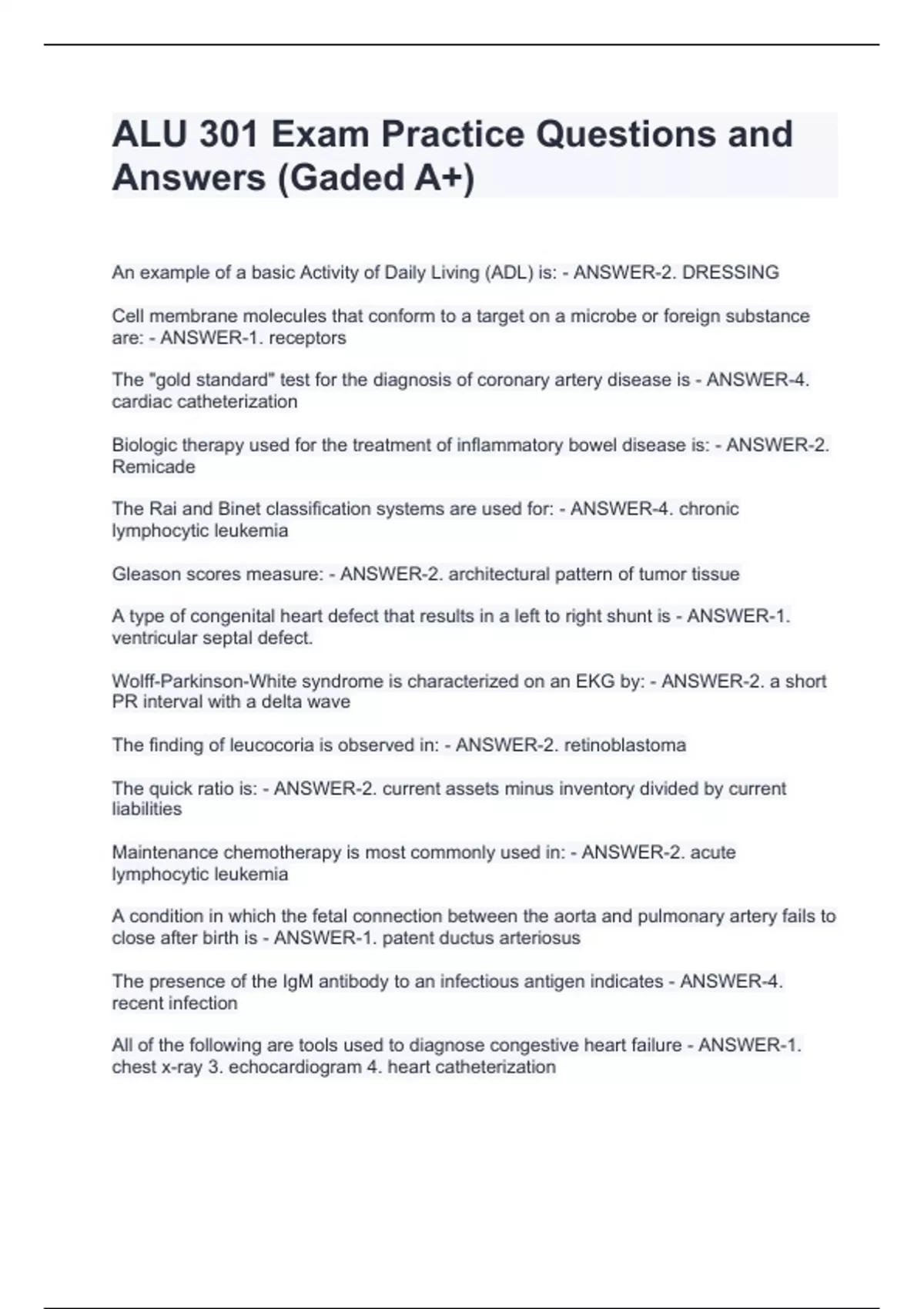 ALU 301 Exam Practice Questions and Answers (Gaded A+)