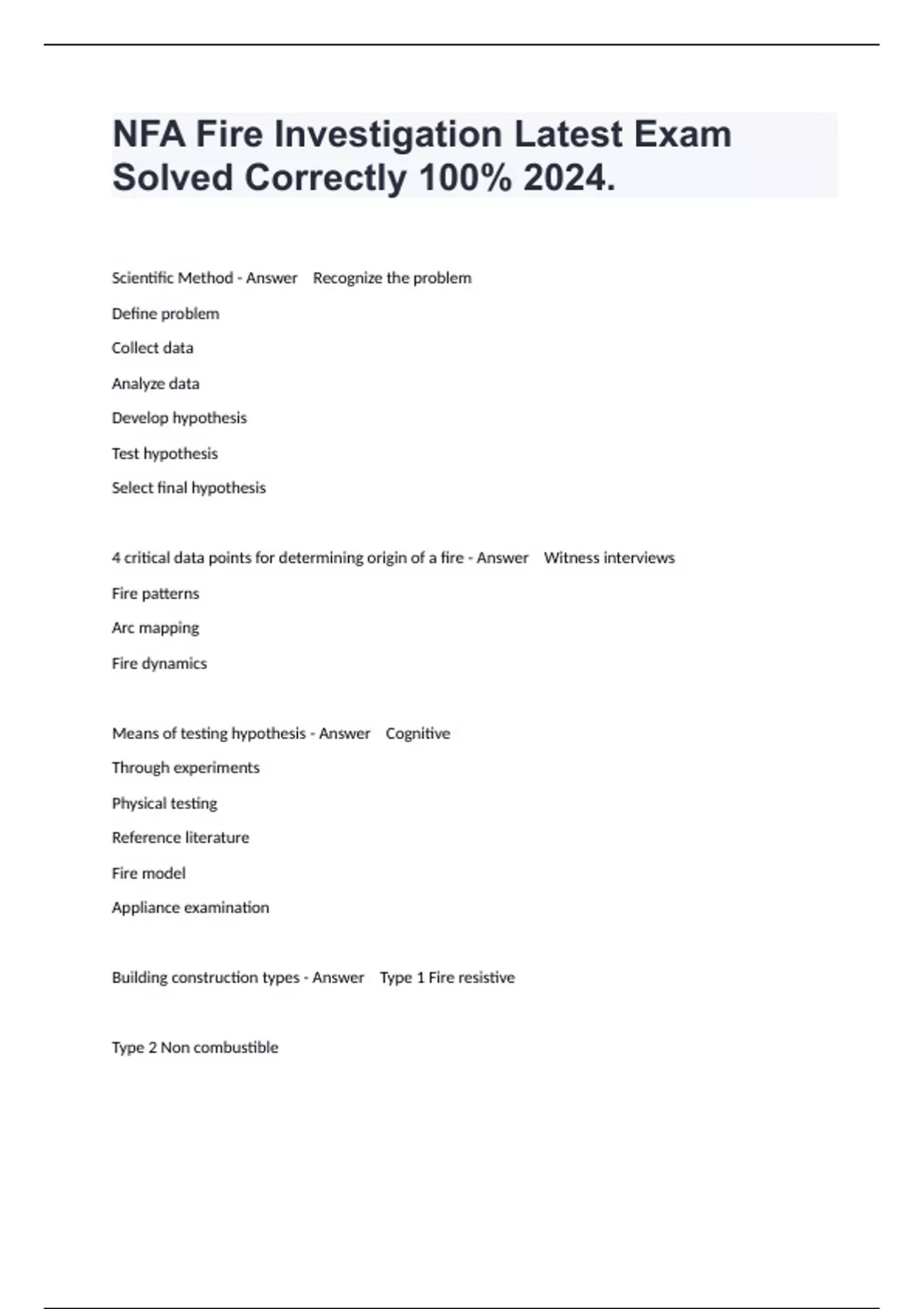 NFA Fire Investigation Latest Exam Solved Correctly 100% 2024.