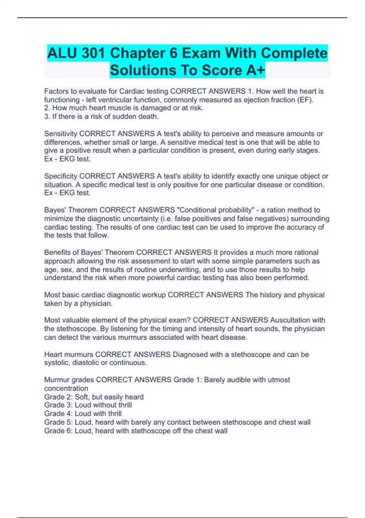 ALU 301 Chapter 6 Exam With Complete Solutions To Score A+