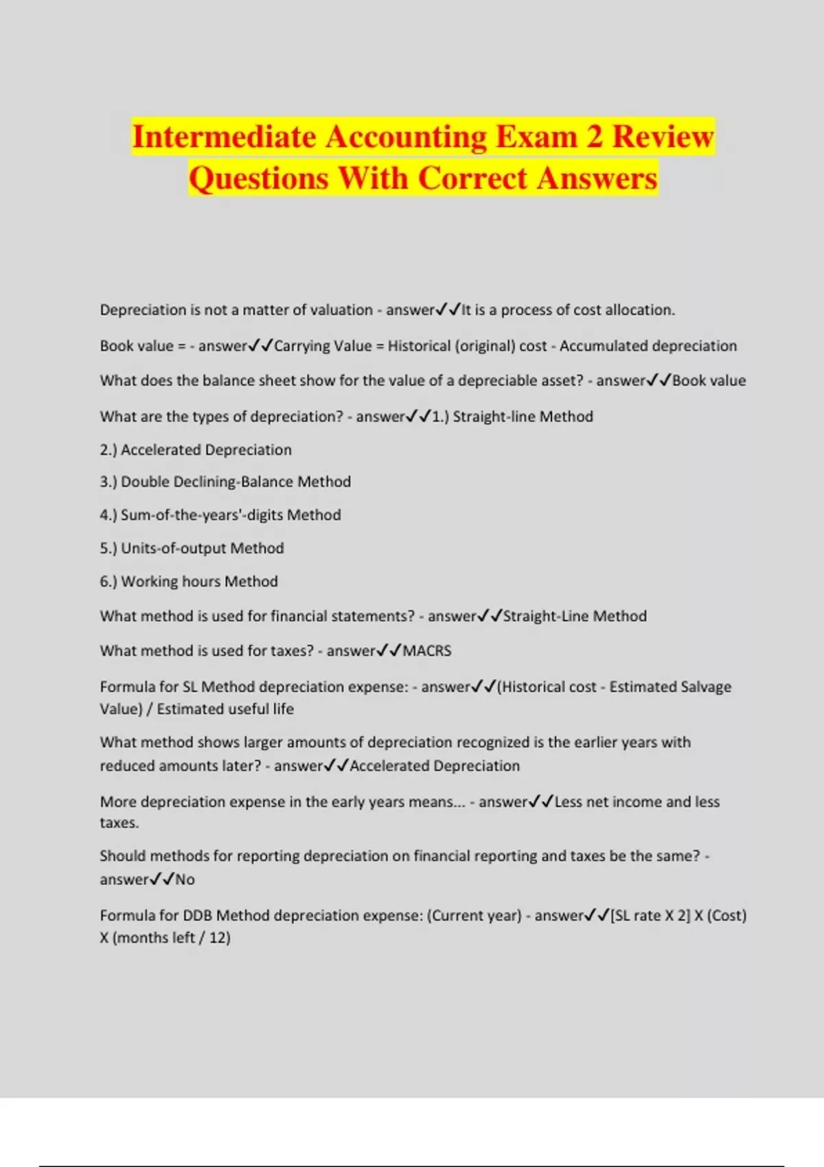 Intermediate Accounting Exam 2 Review Questions With Correct Answers