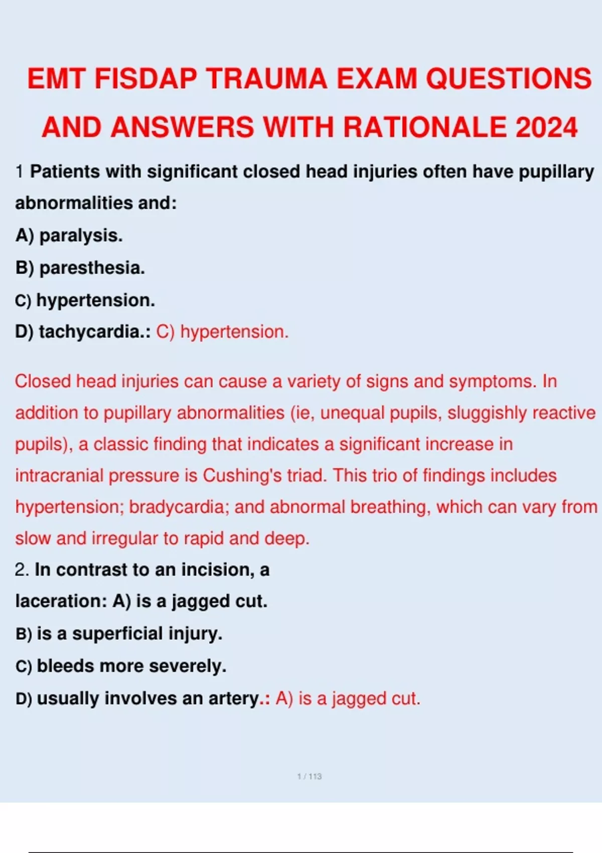 EMT FISDAP TRAUMA EXAM QUESTIONS AND ANSWERS WITH RATIONALE 2024