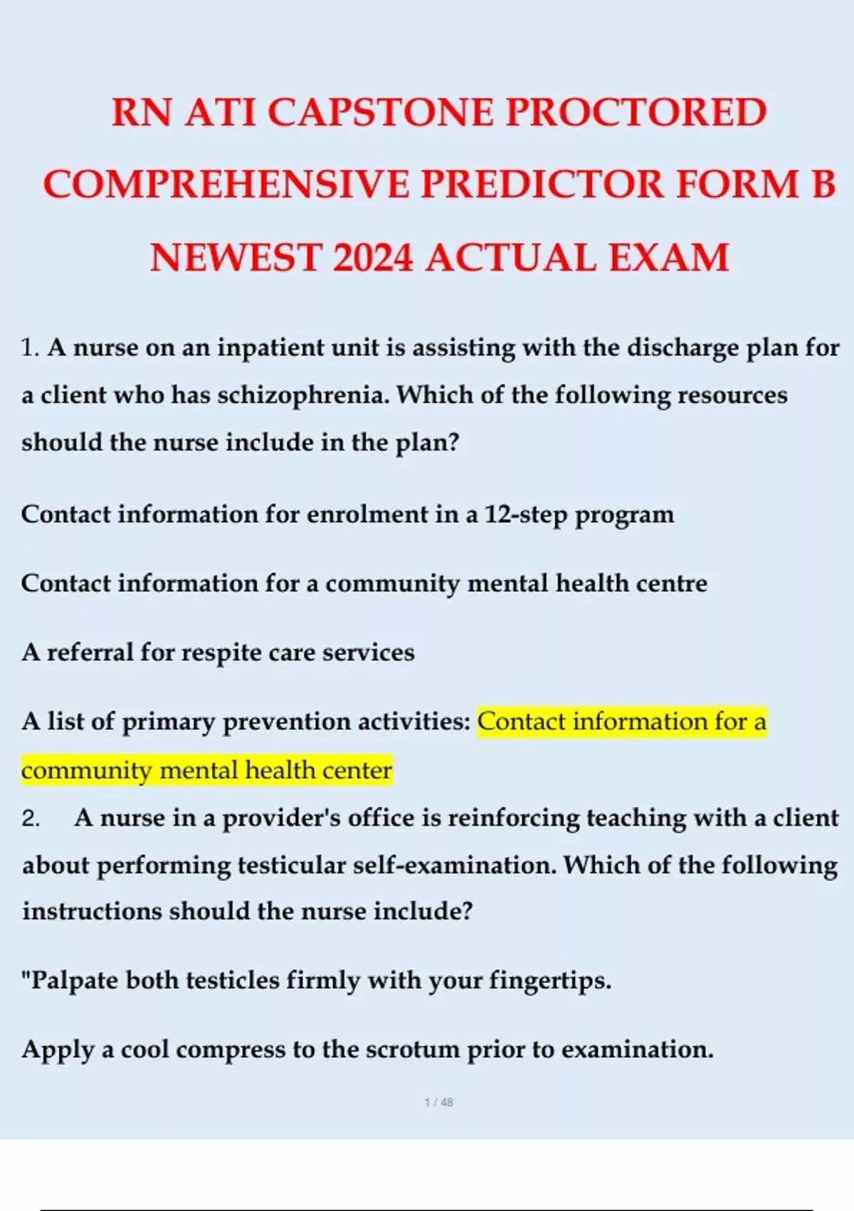 RN ATI CAPSTONE PROCTORED COMPREHENSIVE PREDICTOR FORM B NEWEST 2024 ACTUAL EXAM