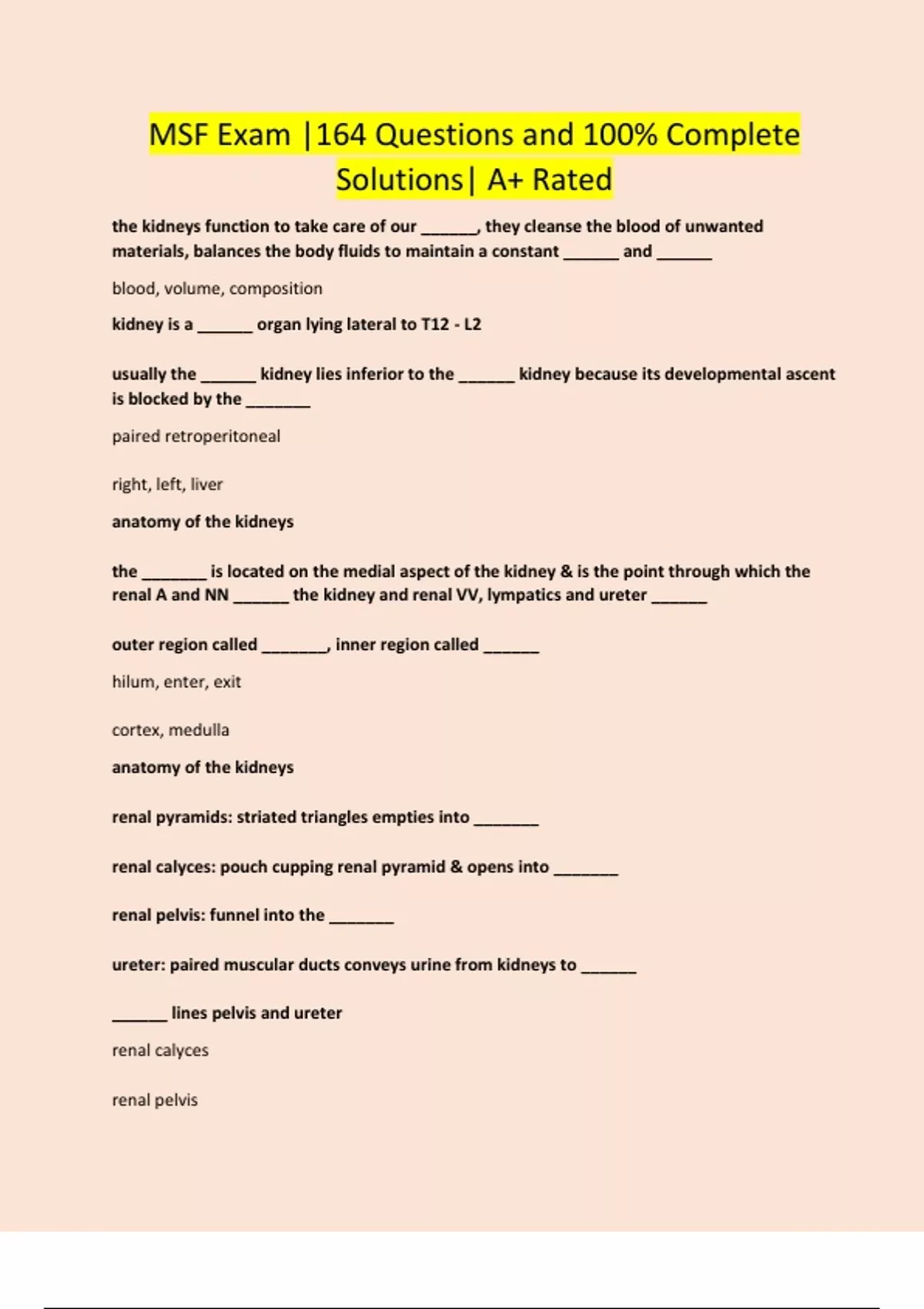 MSF Exam |164 Questions and 100% Complete Solutions| A+ Rated