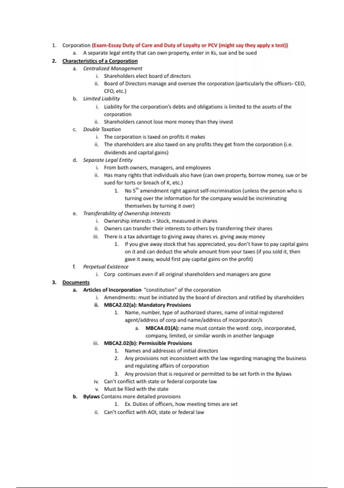 A outline for Corporations at Pepperdine Law with Professor Taha! Also, prepared me to pass the Bar Exam so Check it Out!