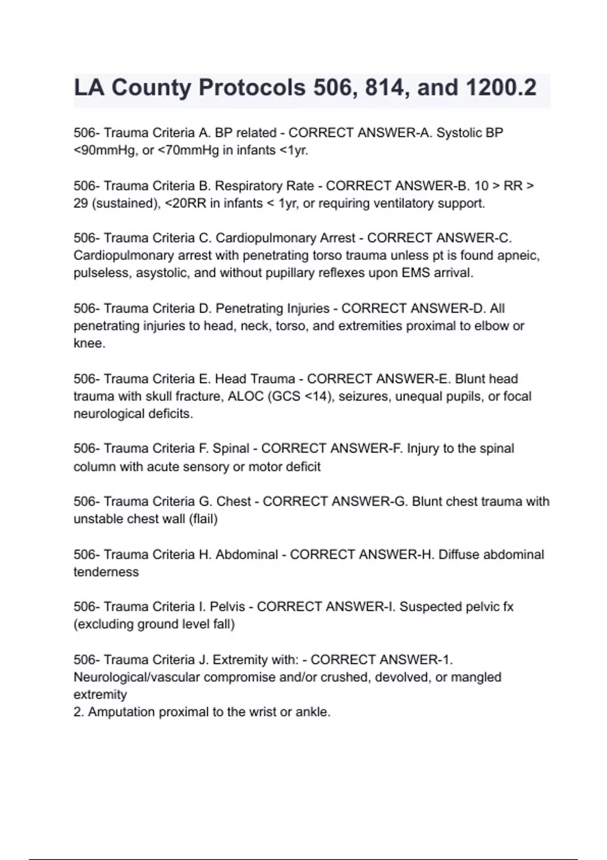 LA County Protocols 506, 814, and 1200.2 questions and answers latest 2024