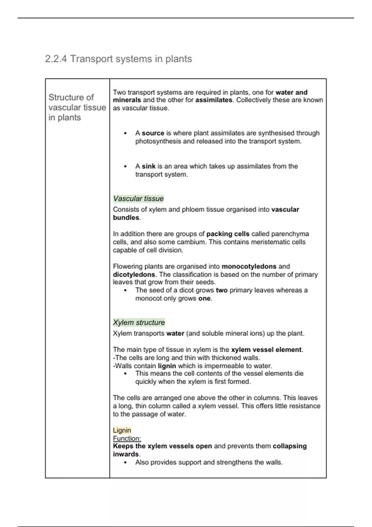 2.2.4 Transport systems in plants