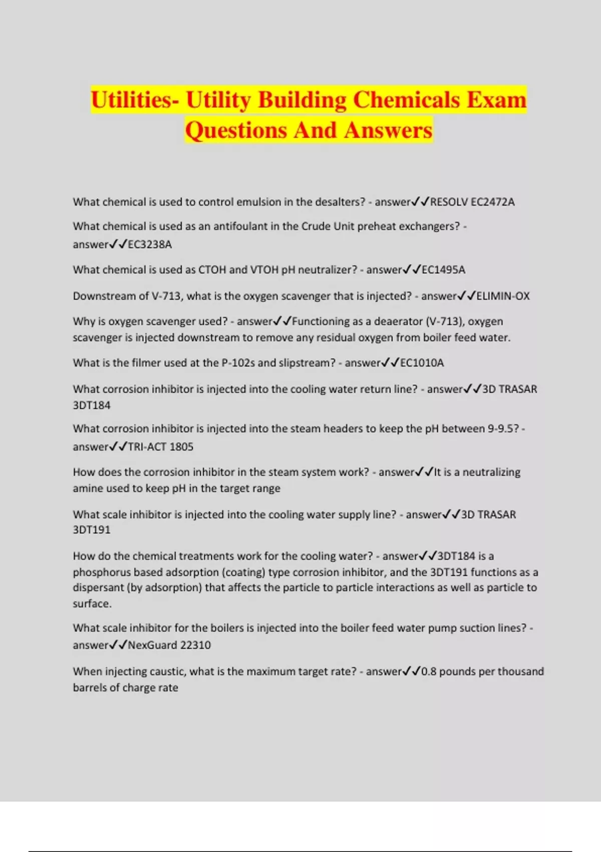 Utilities- Utility Building Chemicals Exam Questions And Answers