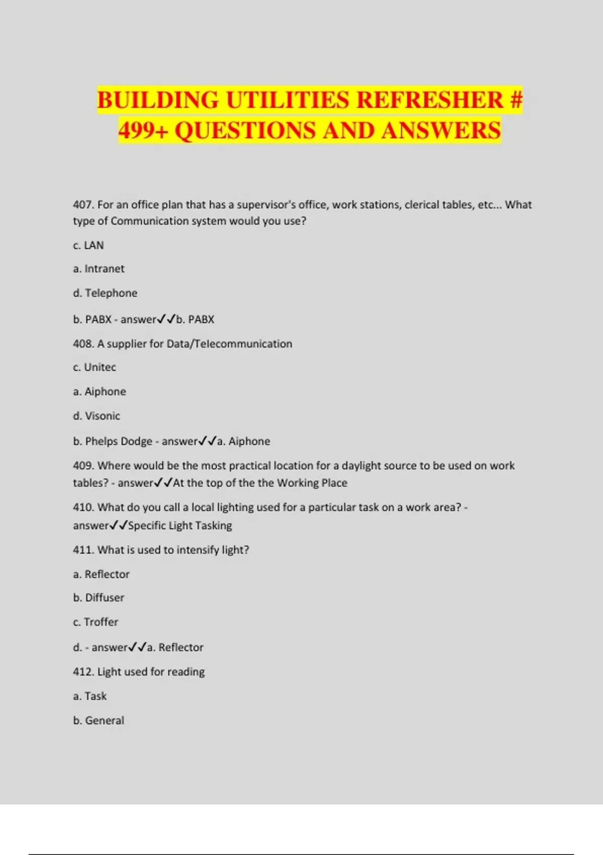 BUILDING UTILITIES REFRESHER # 499+ QUESTIONS AND ANSWERS