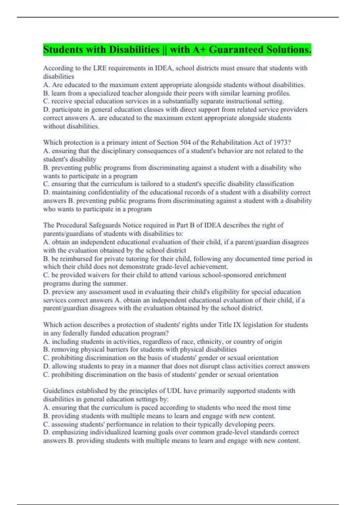 Students with Disabilities || with A+ Guaranteed Solutions.