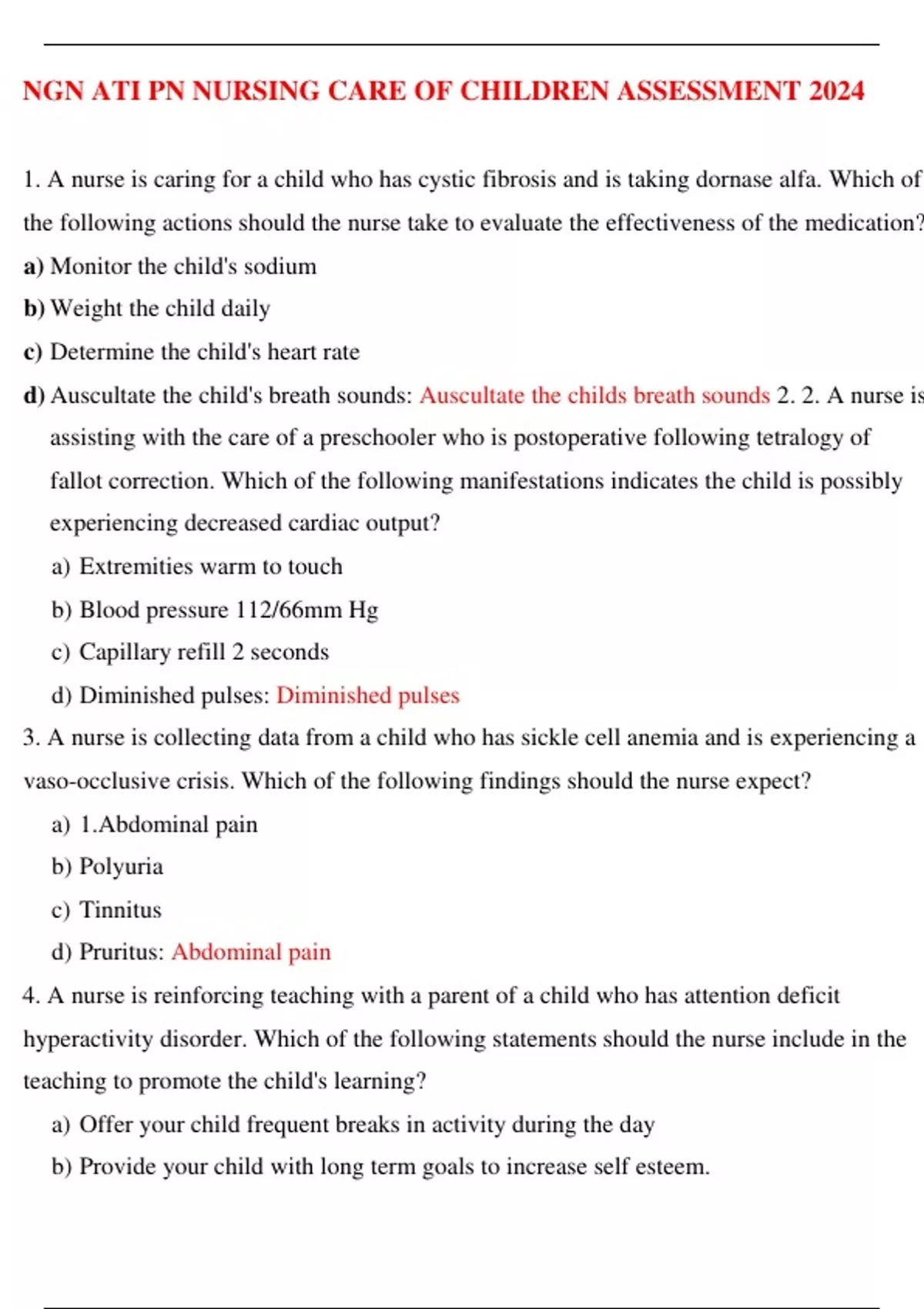 d) Auscultate the child's breath sounds: Auscultate the childs breath sounds 2. 2. A nurse is