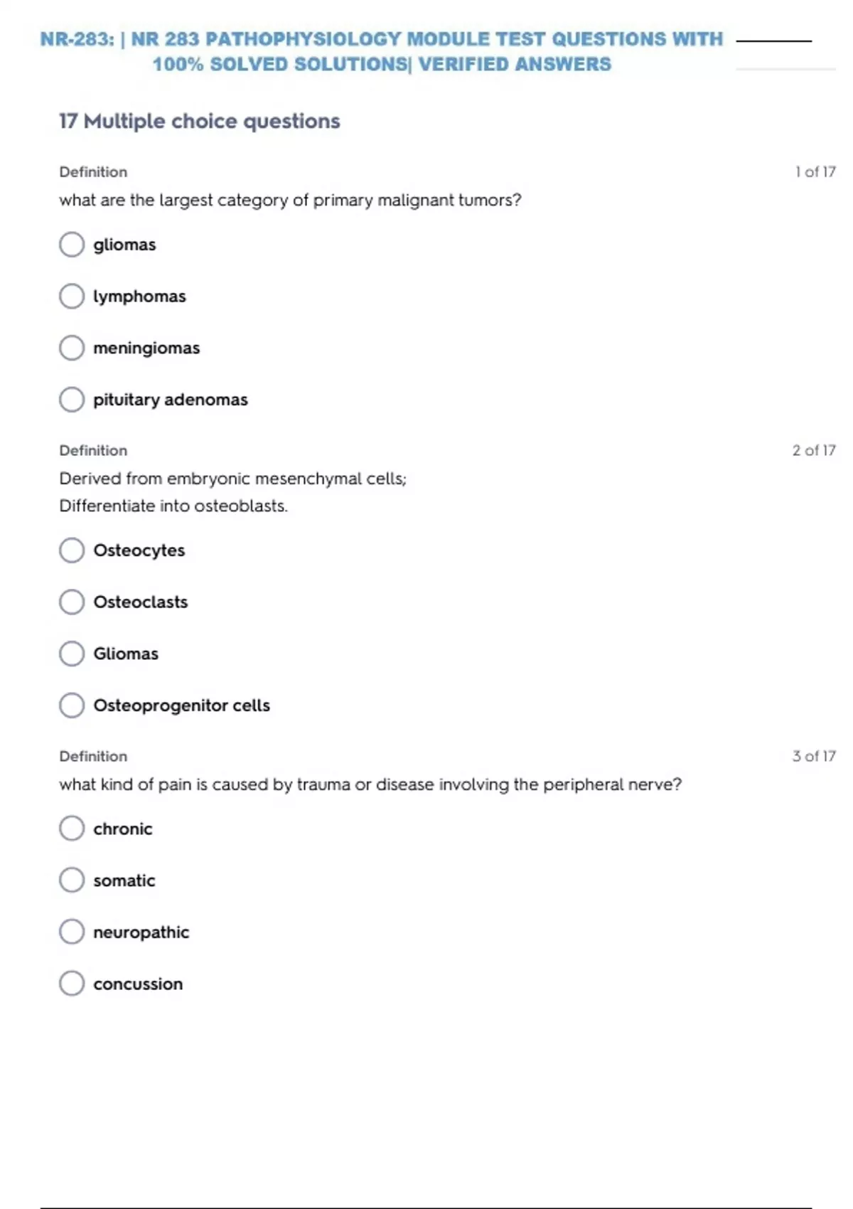 NR-283: | NR 283 PATHOPHYSIOLOGY MODULE TEST 3 QUESTIONS WITH 100% SOLVED SOLUTIONS| VERIFIED ANSWERS