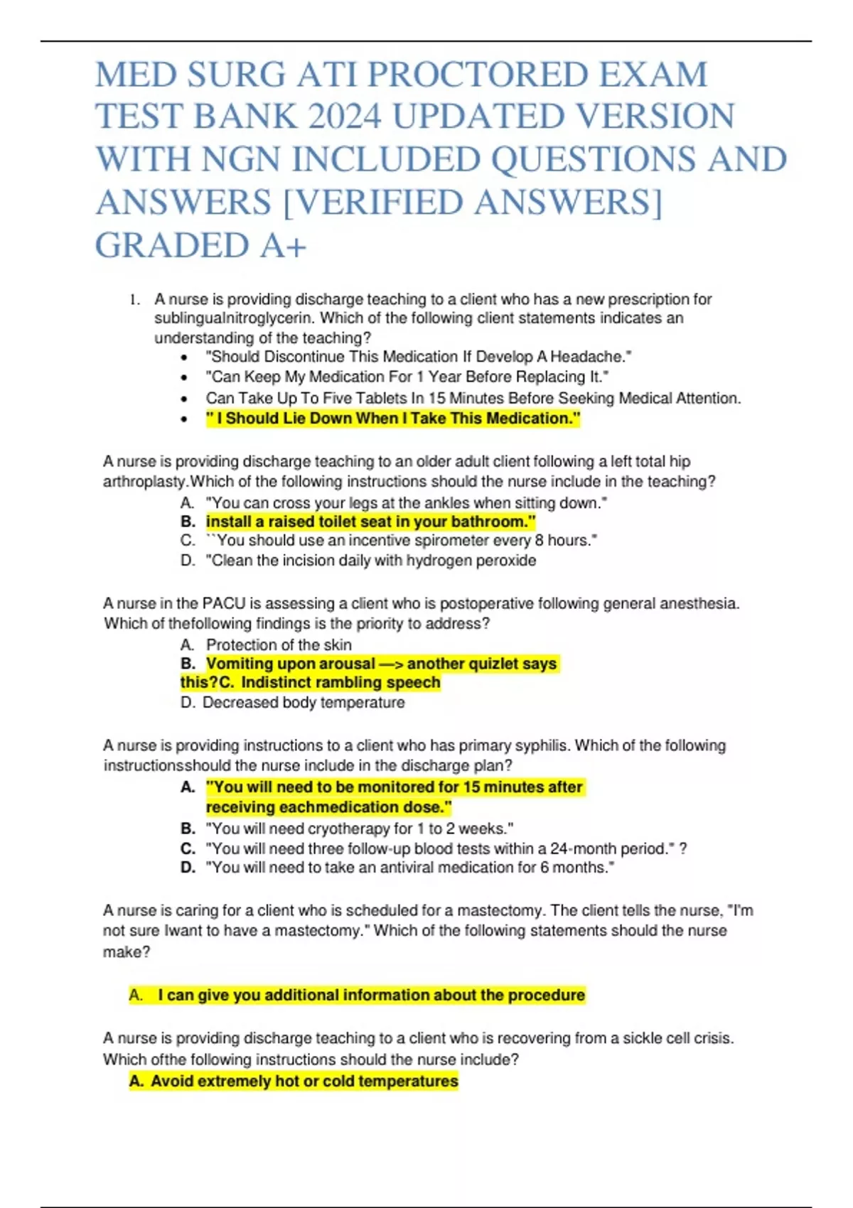 MED SURG ATI PROCTORED EXAM TEST BANK 2024 UPDATED VERSION WITH NGN INCLUDED QUESTIONS AND ANSWERS [VERIFIED ANSWERS] GRADED A+ MED SURG ATI PROCTORED EXAM TEST BANK 2024 UPDATED VERSION WITH NGN INCLUDED QUESTIONS AND ANSWERS [VERIFIED ANSWERS] GRADED A+ MED SURG ATI PROCTORED EXAM TEST BANK 2024 UPDATED VERSION WITH NGN INCLUDED QUESTIONS AND ANSWERS [VERIFIED ANSWERS] GRADED A+