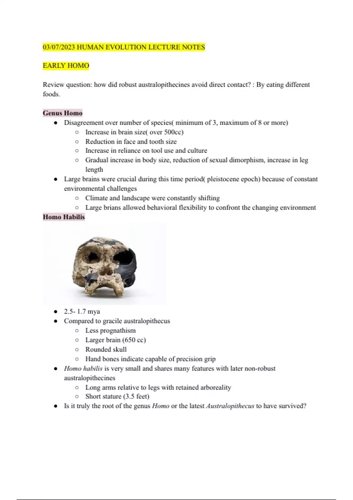 Human evolution 105 class uic