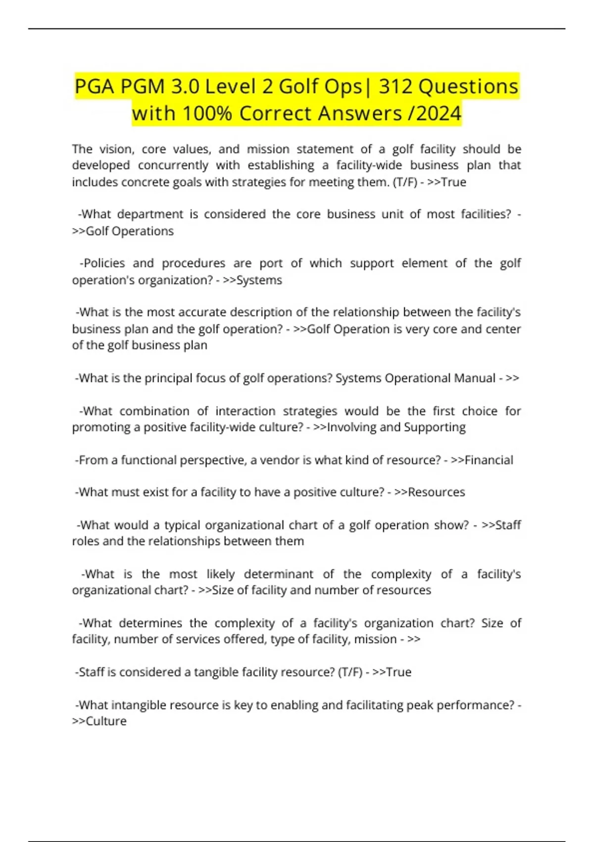 PGA PGM 3.0 Level 2 Golf Ops| 312 Questions