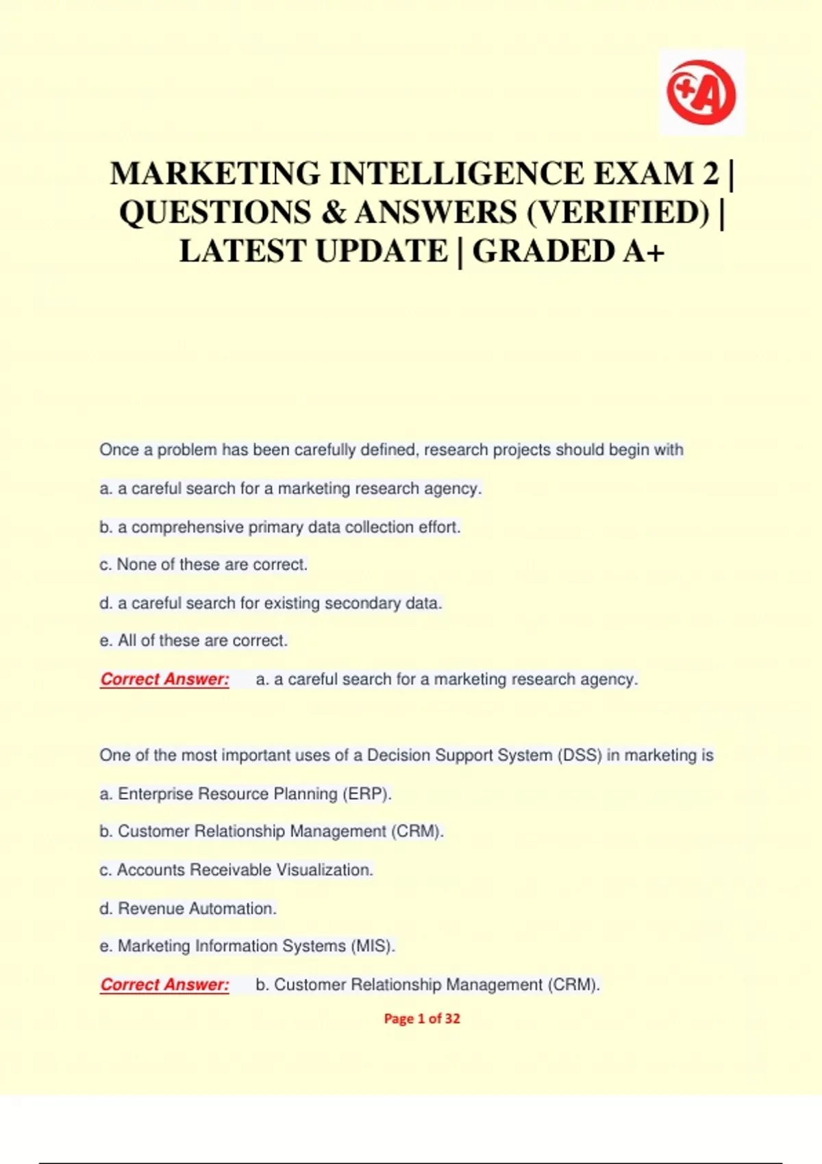 MARKETING INTELLIGENCE EXAM 2 | QUESTIONS & ANSWERS (VERIFIED) | LATEST UPDATE | GRADED A+