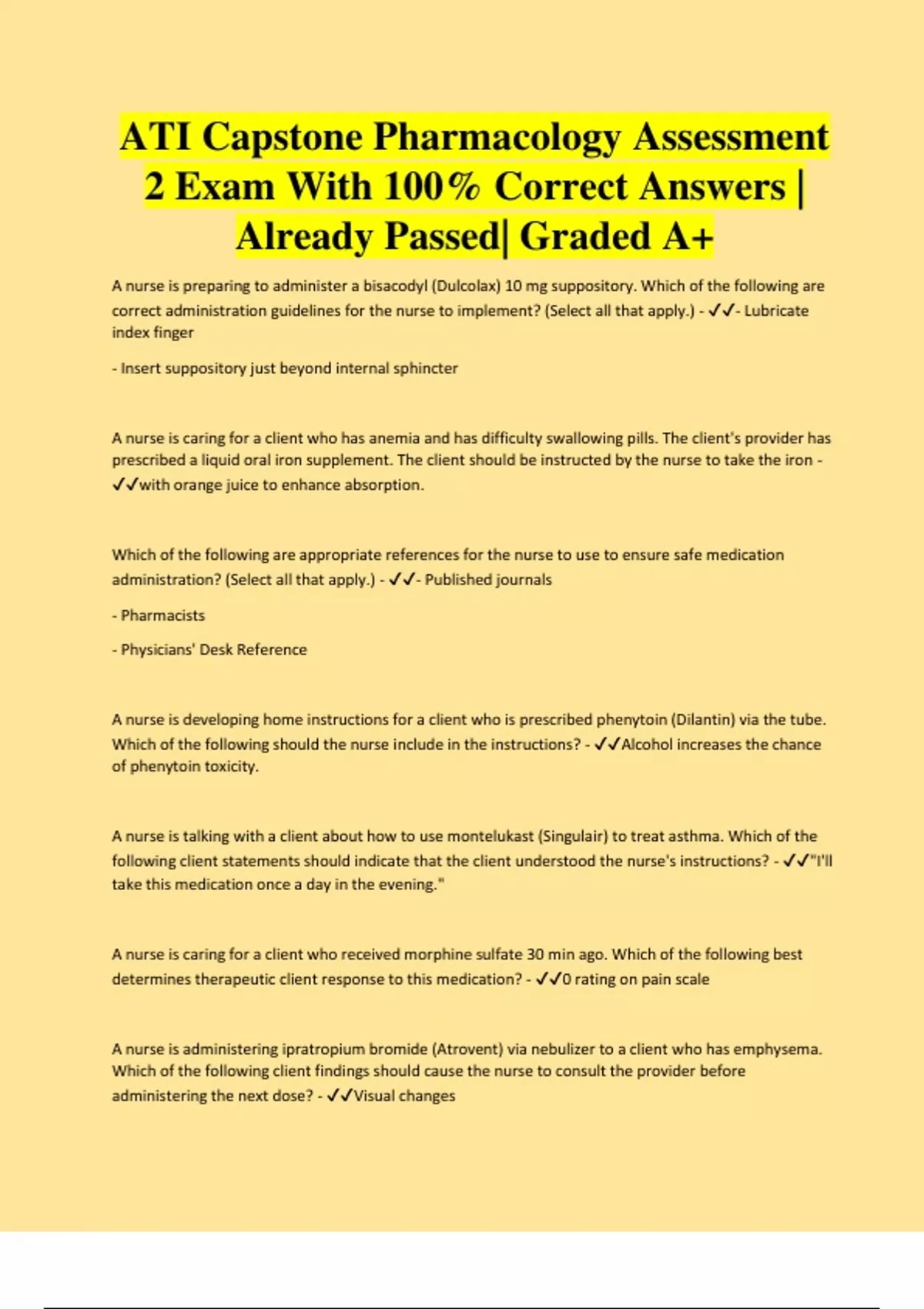 ATI Capstone Pharmacology Assessment 2 Exam With 100% Correct Answers | Already Passed| Graded A+