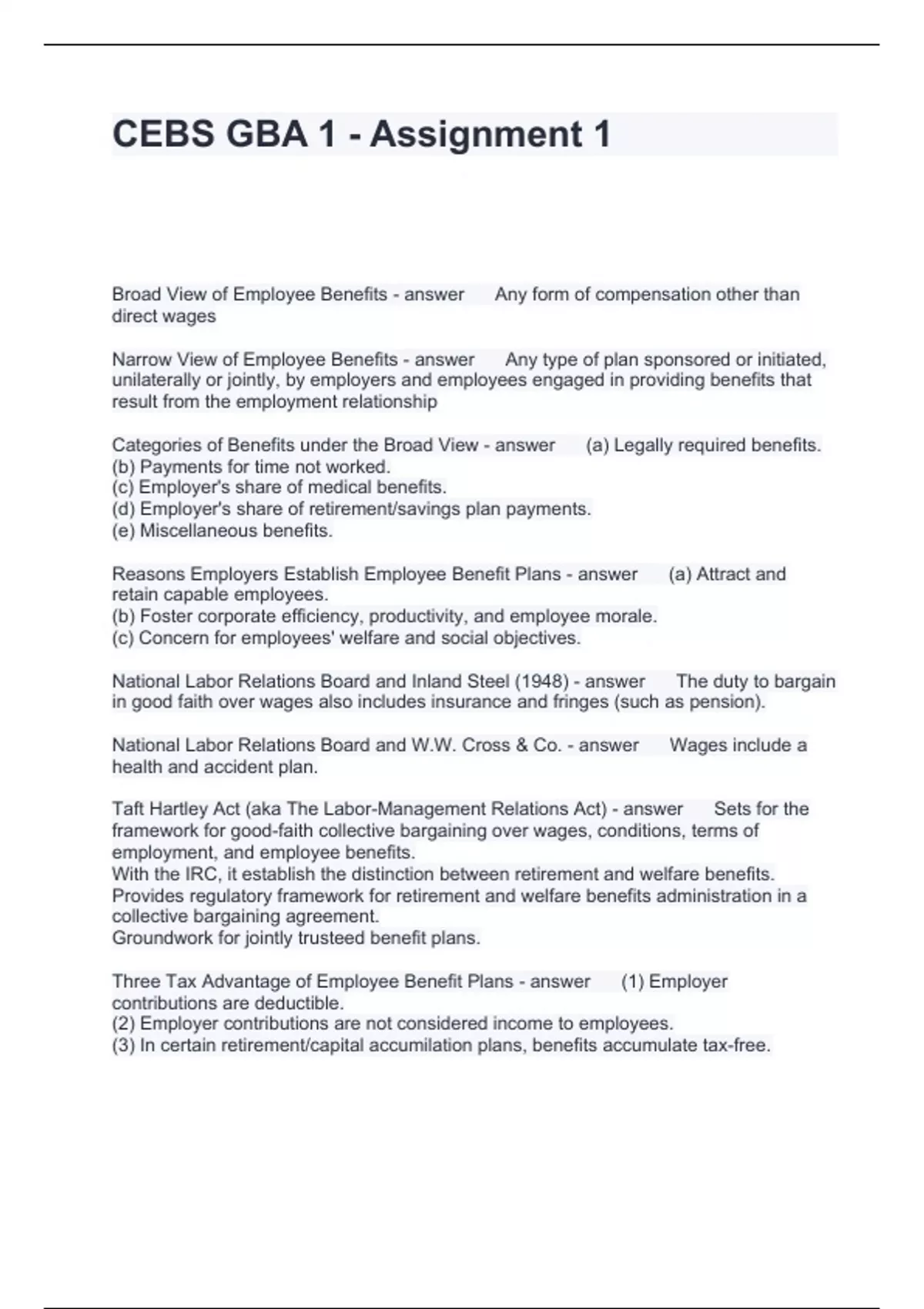 CEBS GBA 1 - Assignment 1 Questions and Answers 100% Accurate