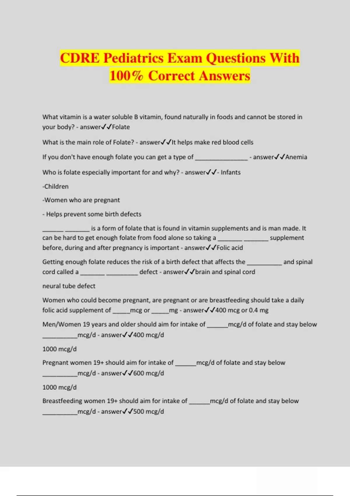 CDRE Pediatrics Exam Questions With 100% Correct Answers