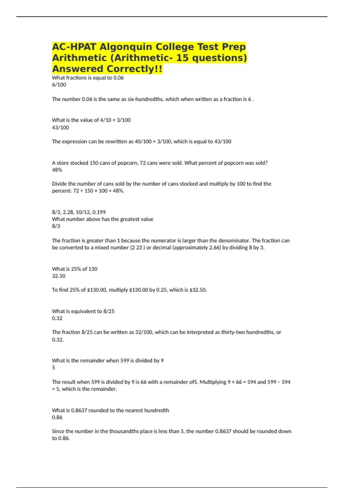 Arithmetic (Arithmetic- 15 questions)