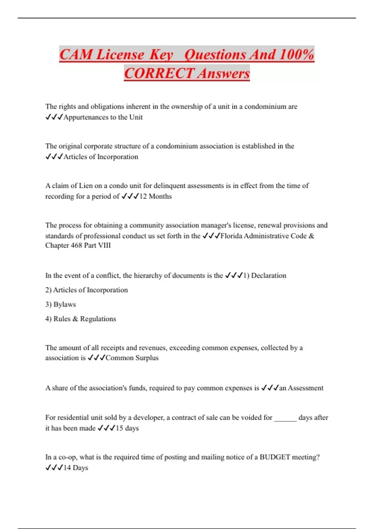 CAM License Key Questions And 100% CORRECT Answers