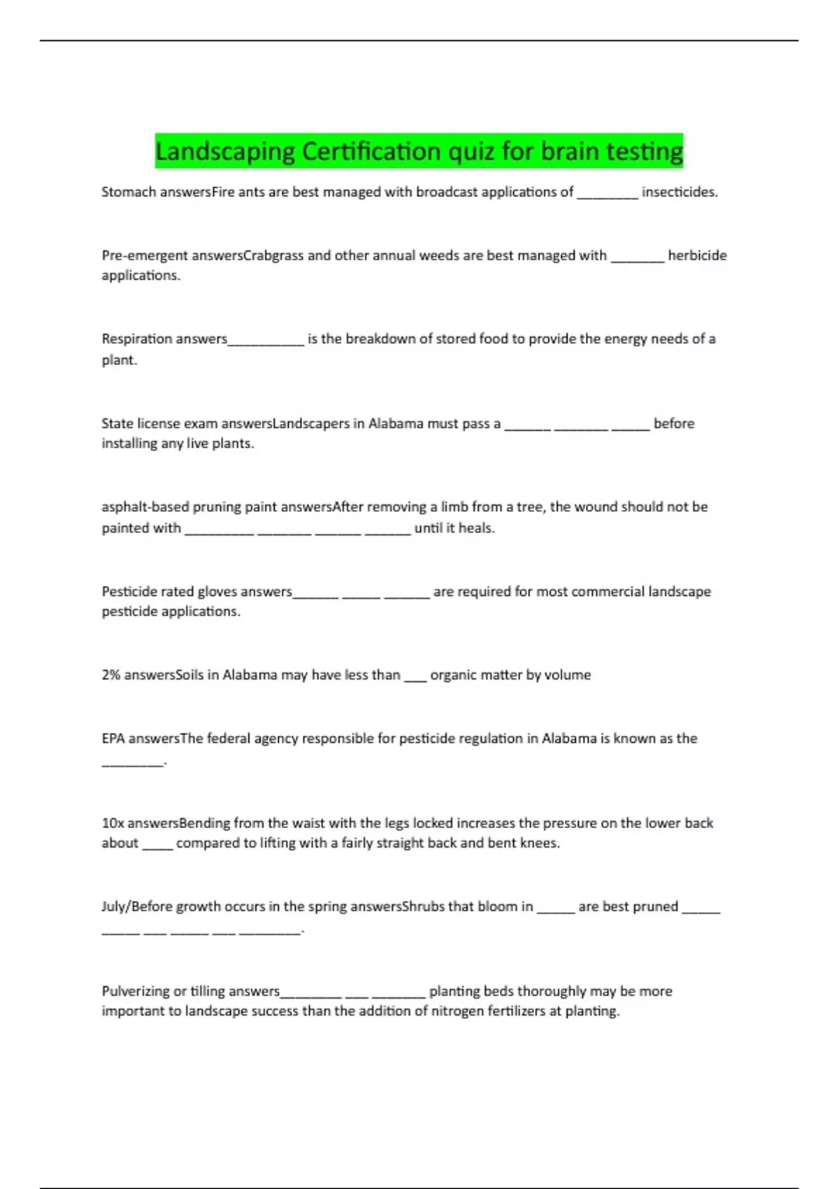 Landscaping Certification quiz for brain testing