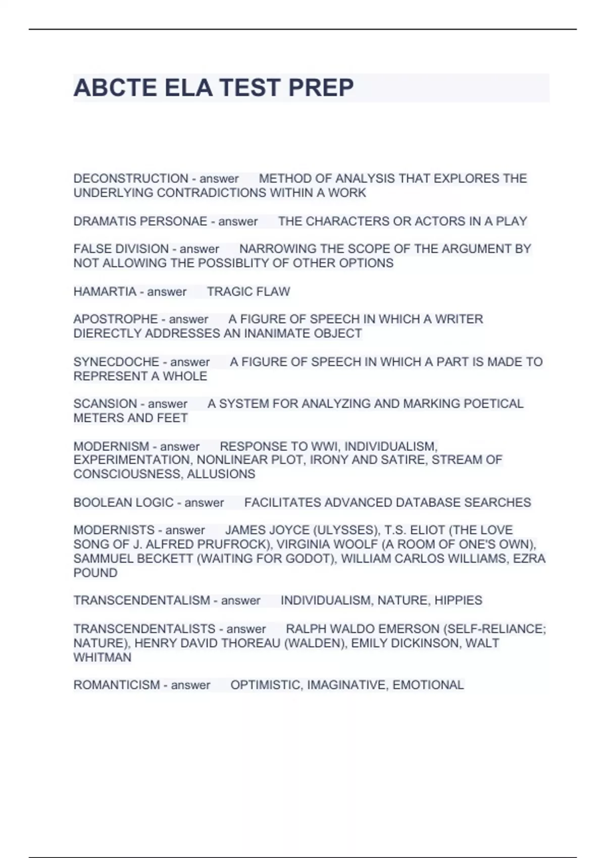 ABCTE ELA TEST PREP QUESTIONS AND ANSWERS 2024