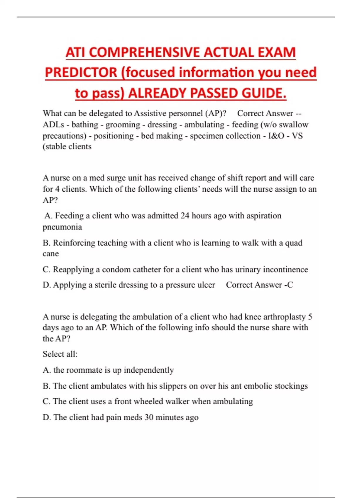 ATI COMPREHENSIVE ACTUAL EXAM PREDICTOR (focused information you need to pass) ALREADY PASSED GUIDE.