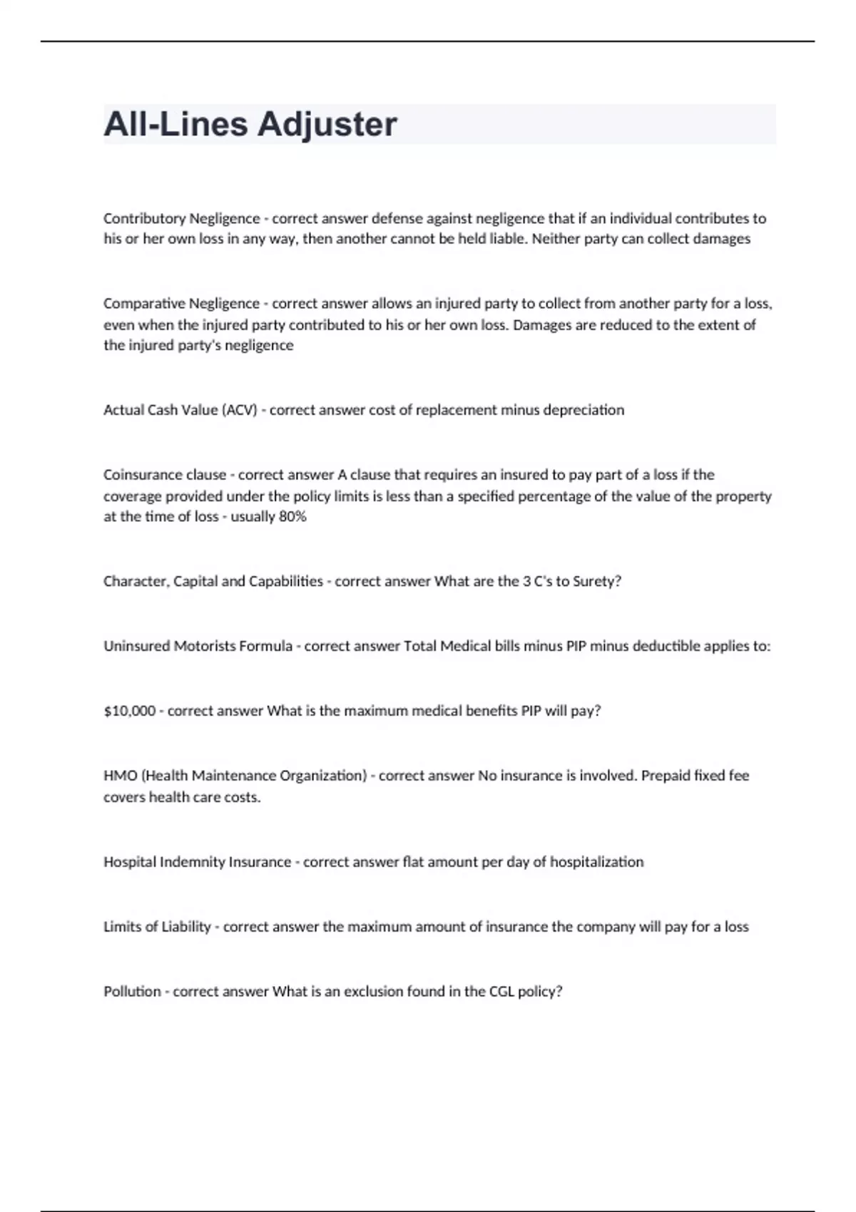 Chapter 6 - Texas All Lines questions n answers graded A+ 2024/2025