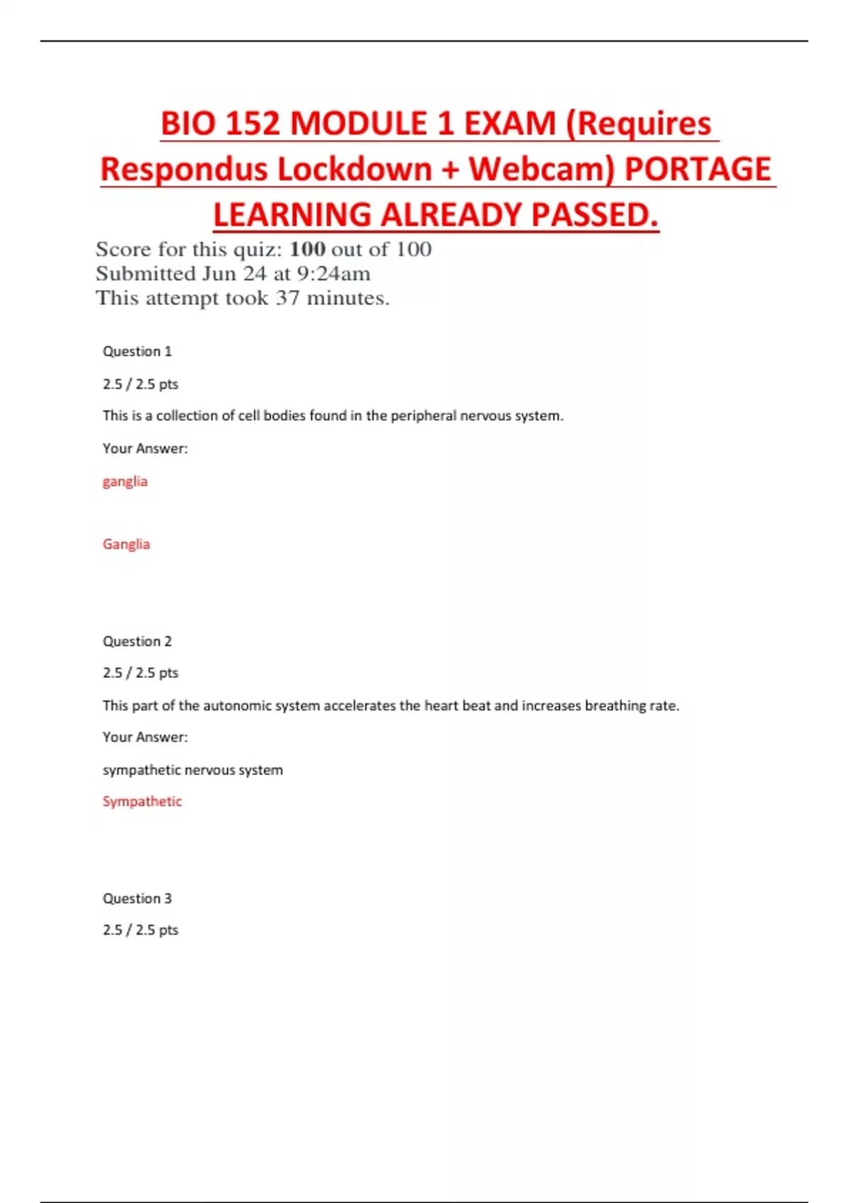 BIO 152 MODULE 1 EXAM (Requires Respondus Lockdown + Webcam) PORTAGE LEARNING ALREADY PASSED.