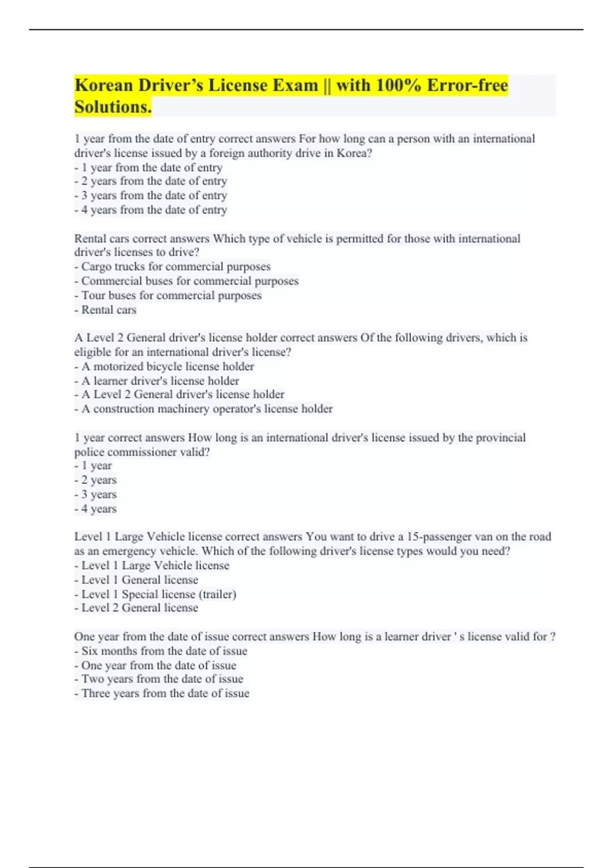 Korean Driver’s License Exam || with 100% Error-free Solutions.