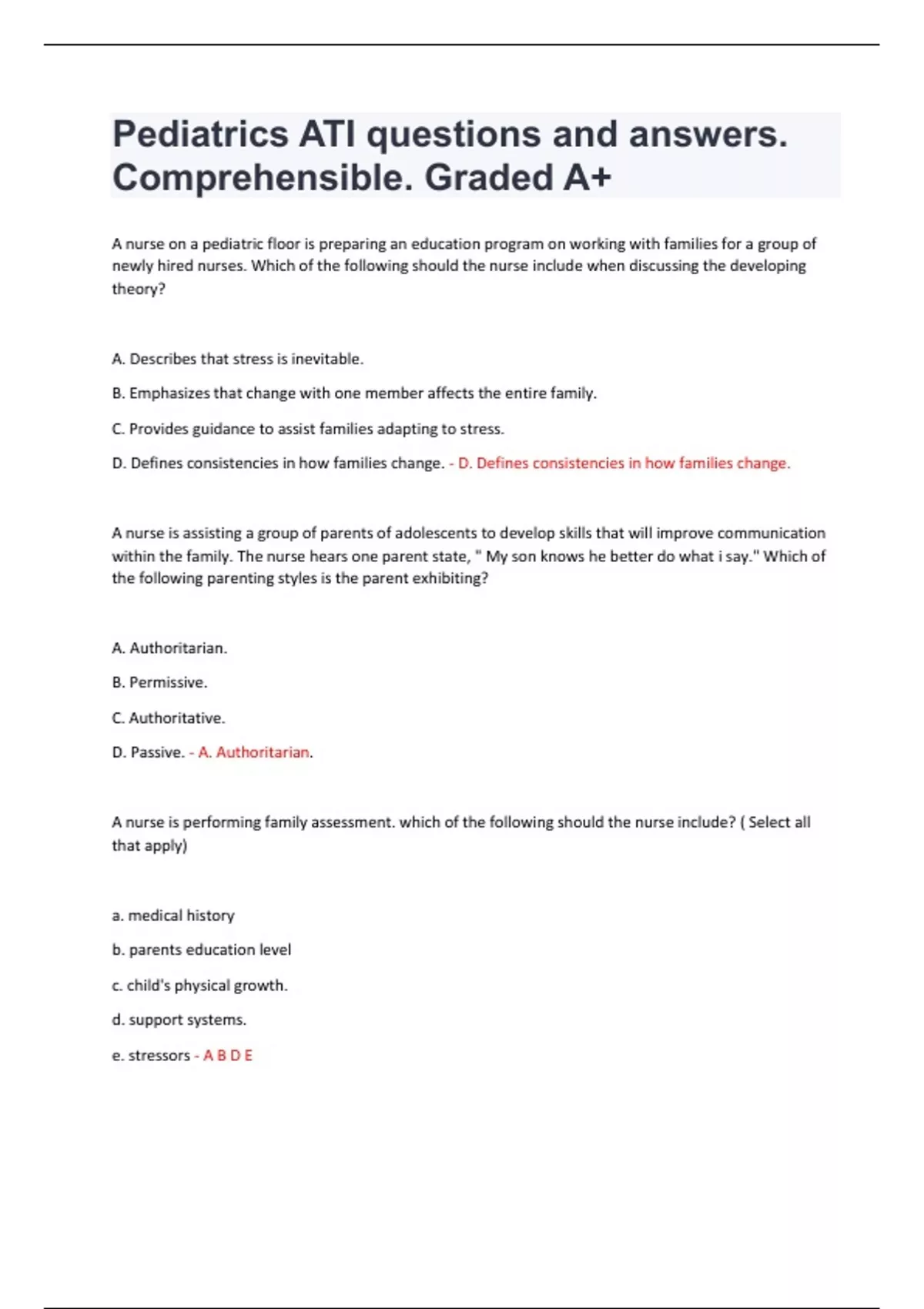 Pediatrics ATI questions and answers. Comprehensible. Graded A+