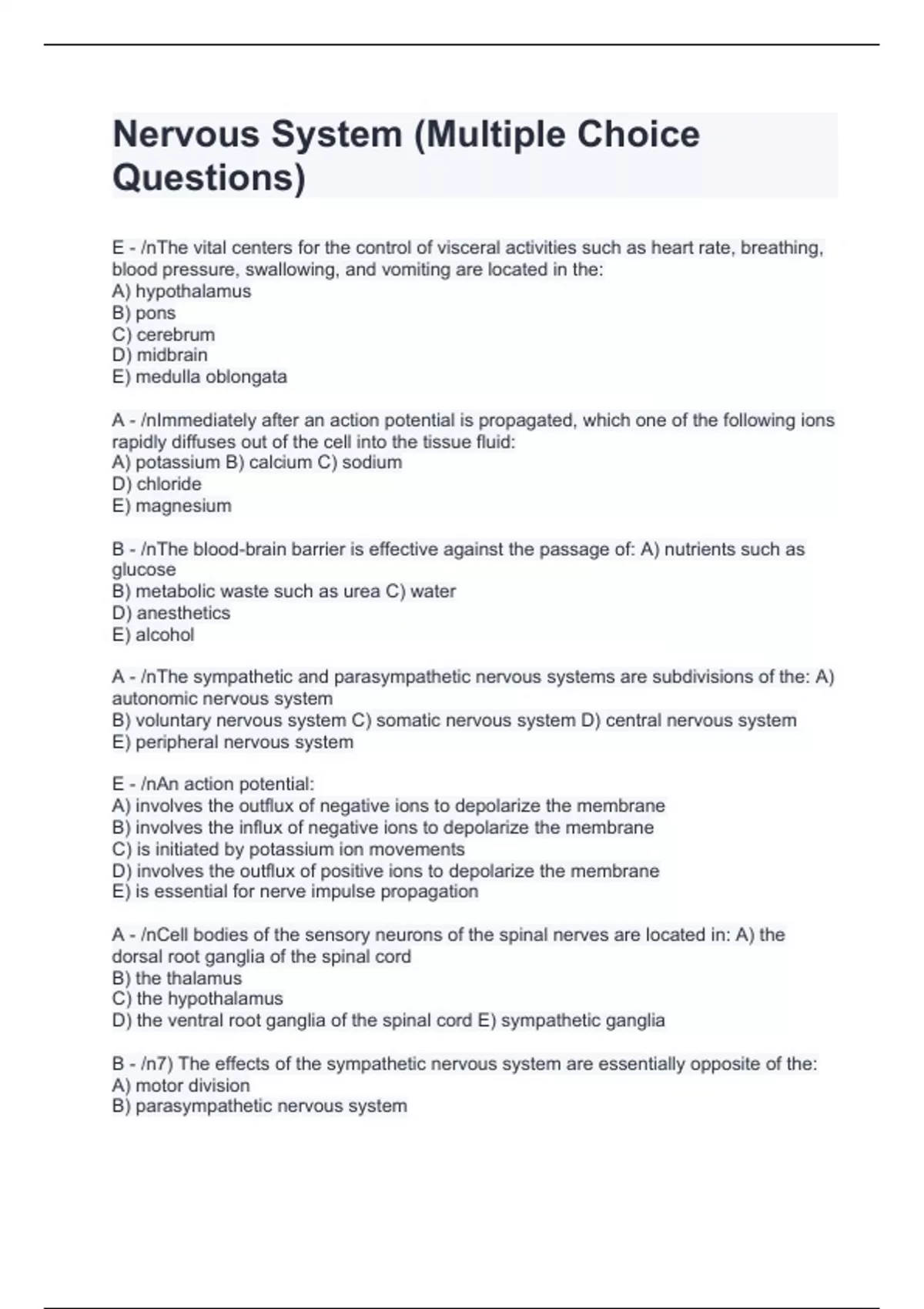 B - /n7) The effects of the sympathetic nervous system are essentially opposite of the: A) motor division