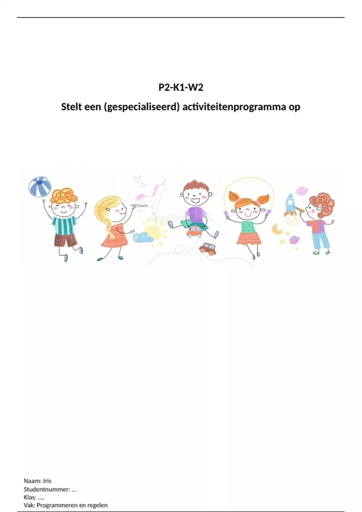 Voor dit examen heb ik de taak gekregen om een activiteitenprogramma bestaande uit vier
