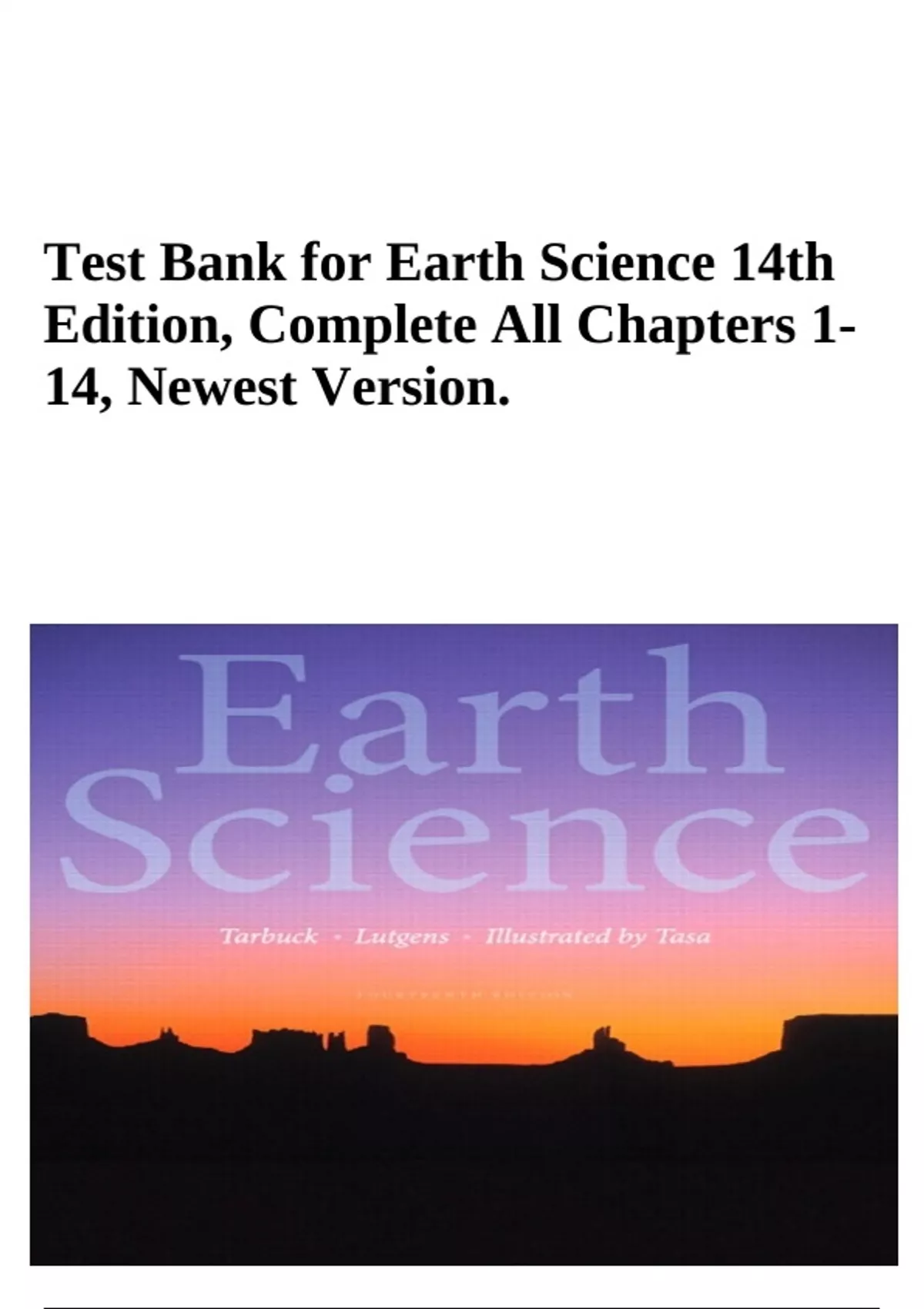 Test Bank for Earth Science 14th Edition, By Tarbuck Complete All Chapters 1- 14, Newest Version.