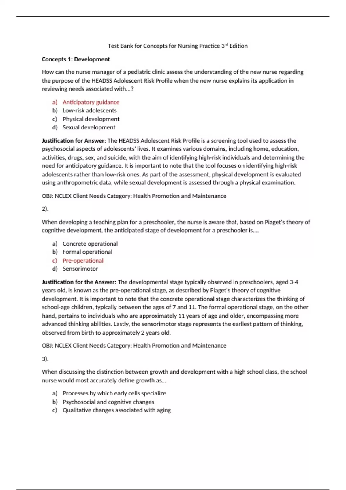 OBJ: NCLEX Client Needs Category: Health Promotion and Maintenance