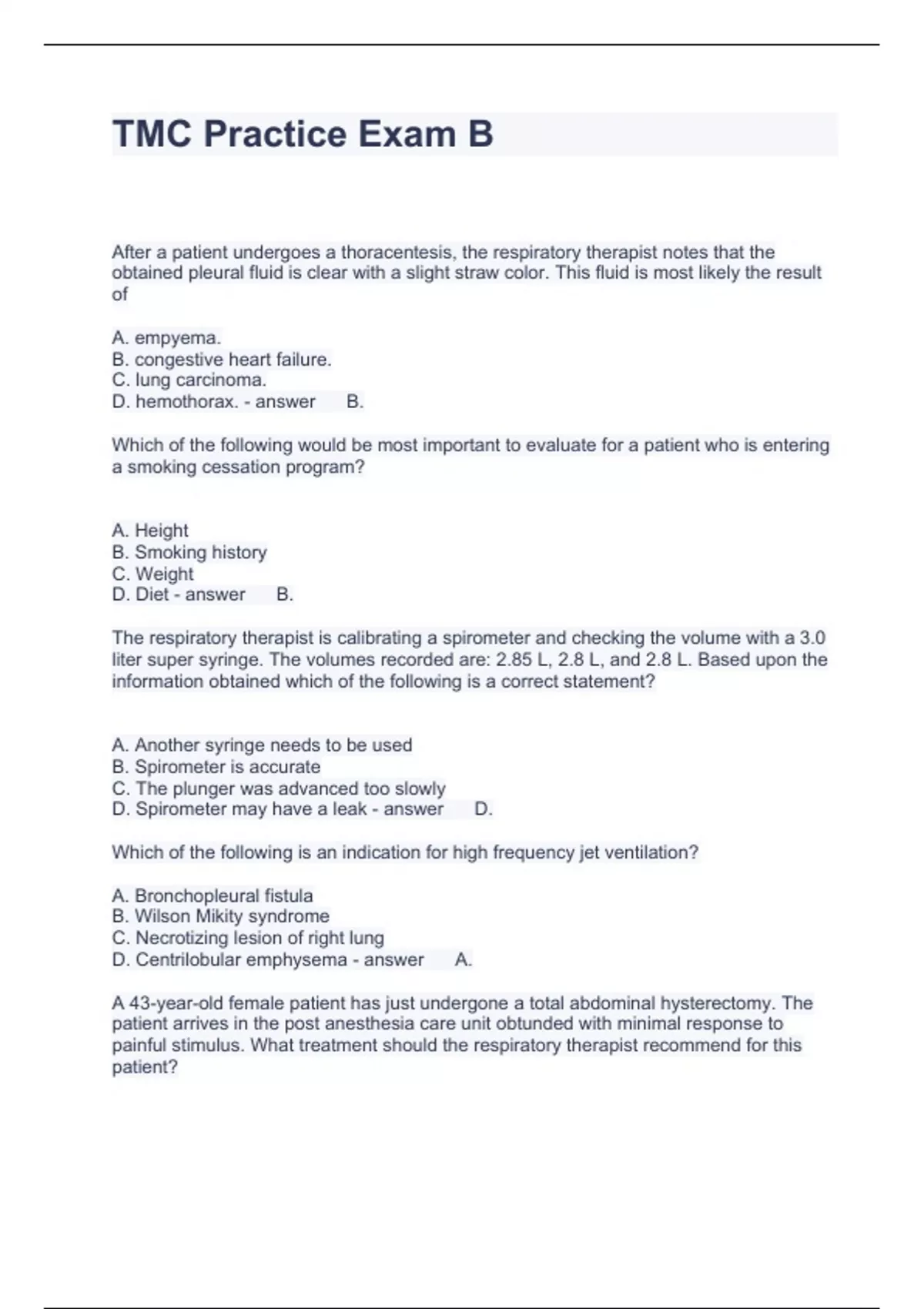 Exam of 37 pages for the course TMC at TMC (TMC Practice Exam B)