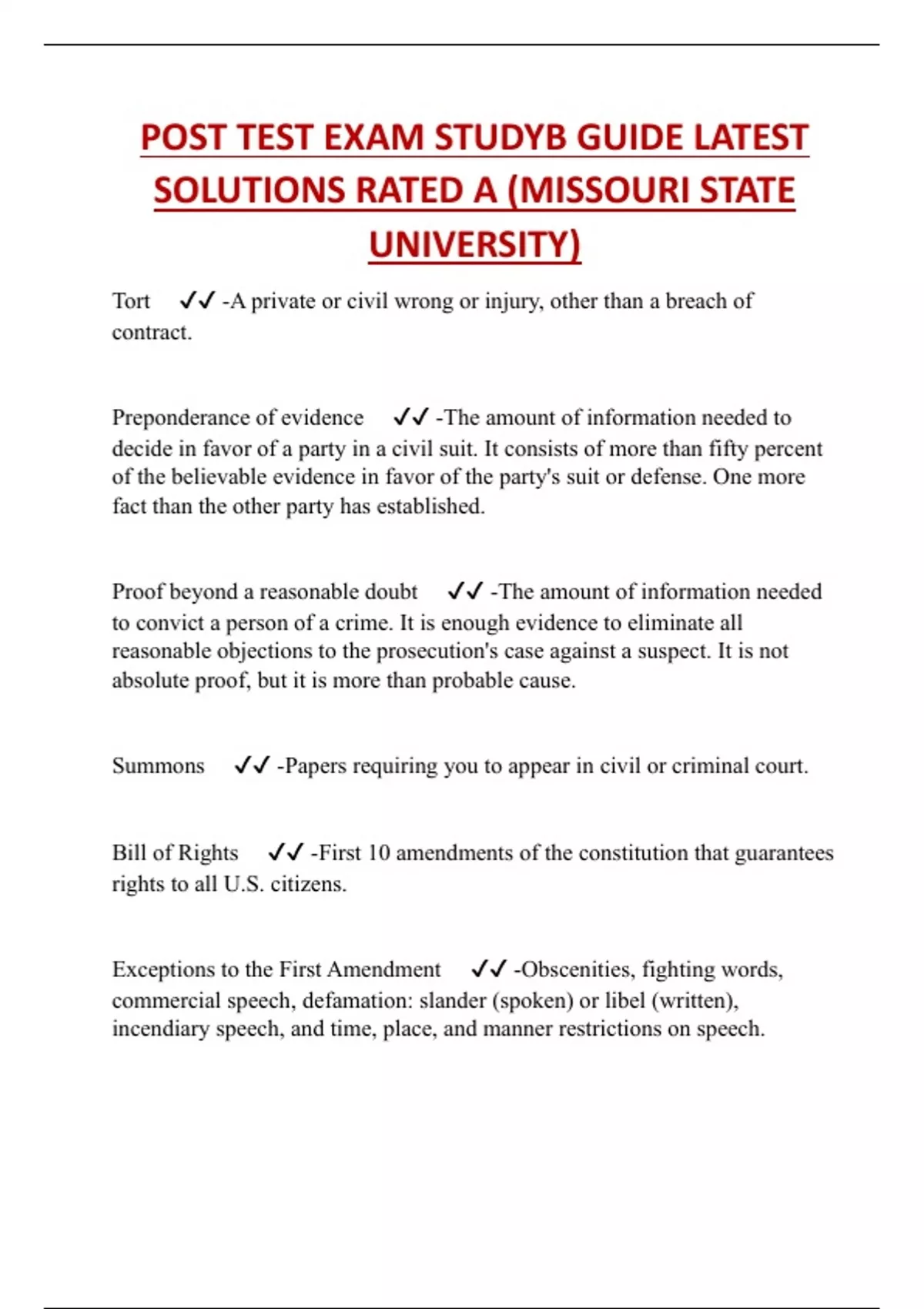 POST TEST EXAM STUDY GUIDE LATEST SOLUTIONS RATED A (MISSOURI STATE UNIVERSITY)