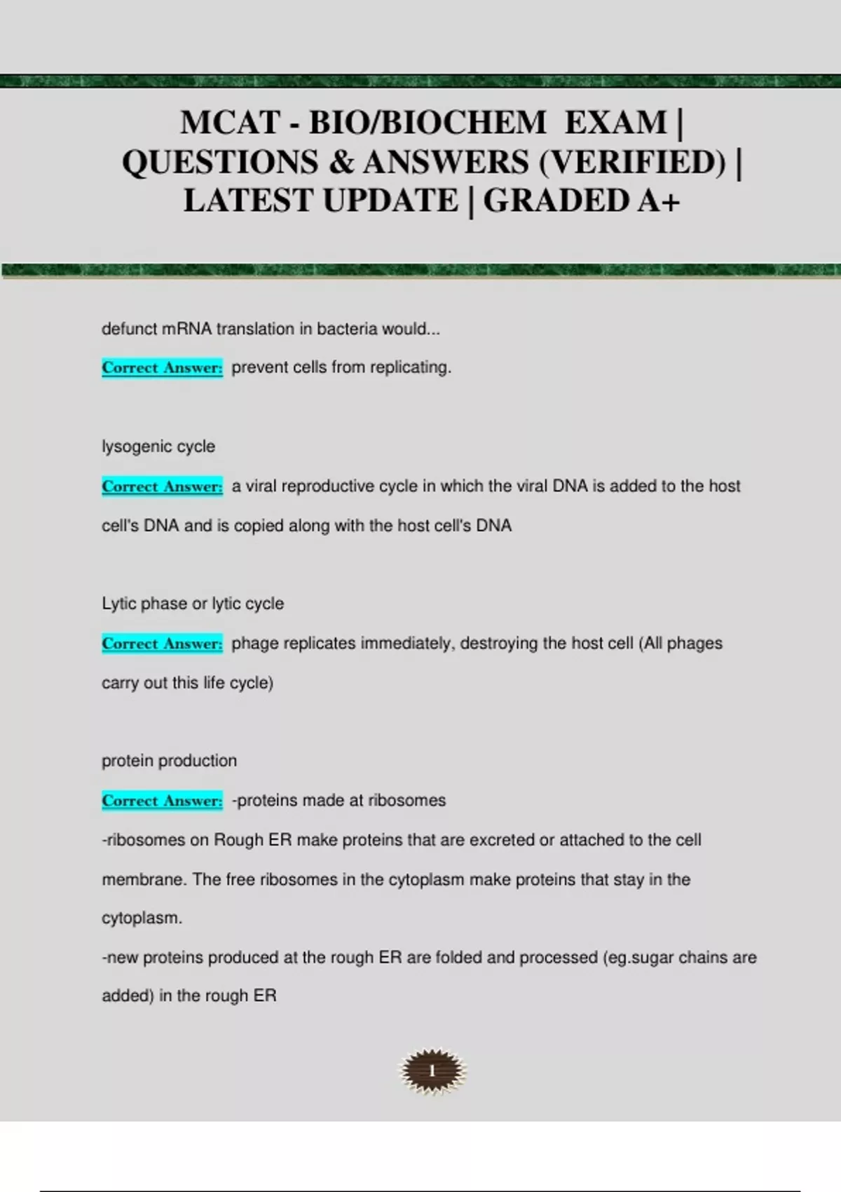 MCAT - BIO/BIOCHEM EXAM | QUESTIONS & ANSWERS (VERIFIED) | LATEST UPDATE | GRADED A+