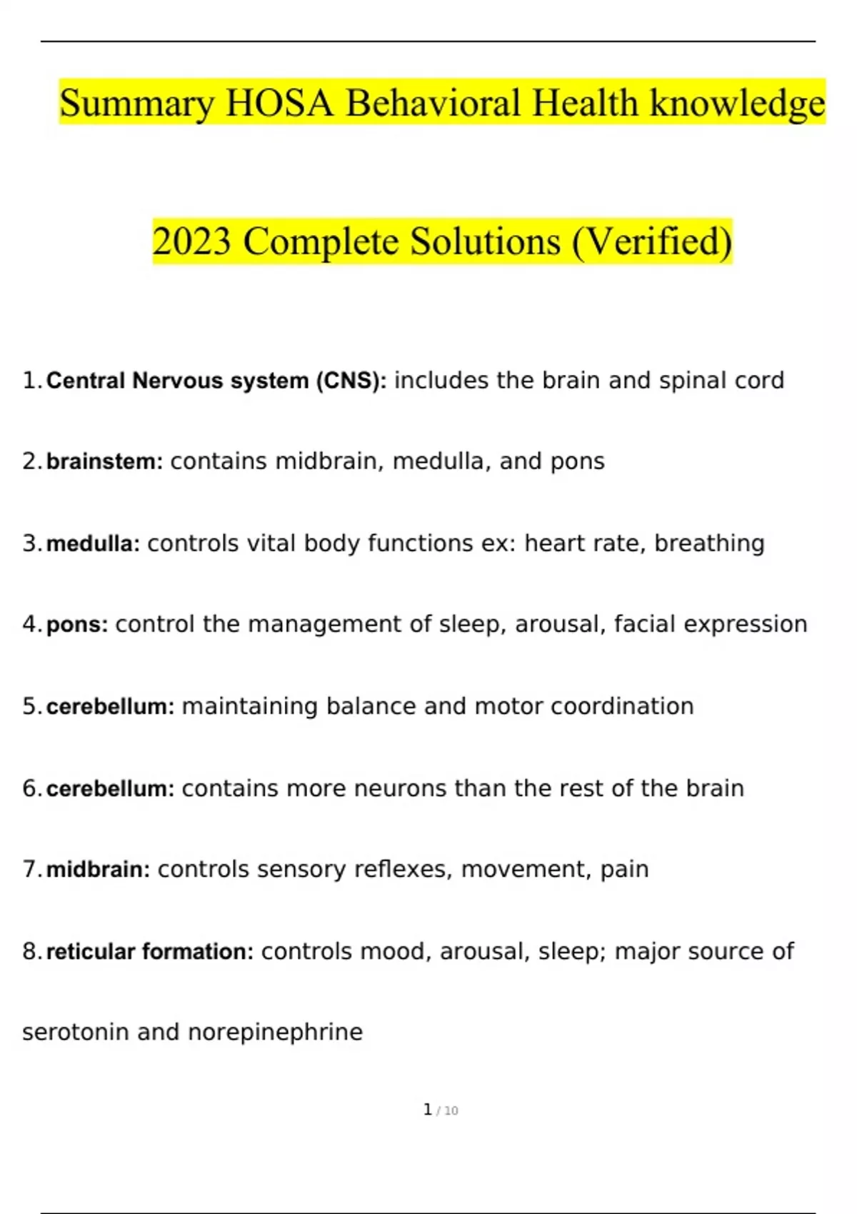 Summary HOSA Behavioral Health knowledge 2023 Complete Solutions Verified