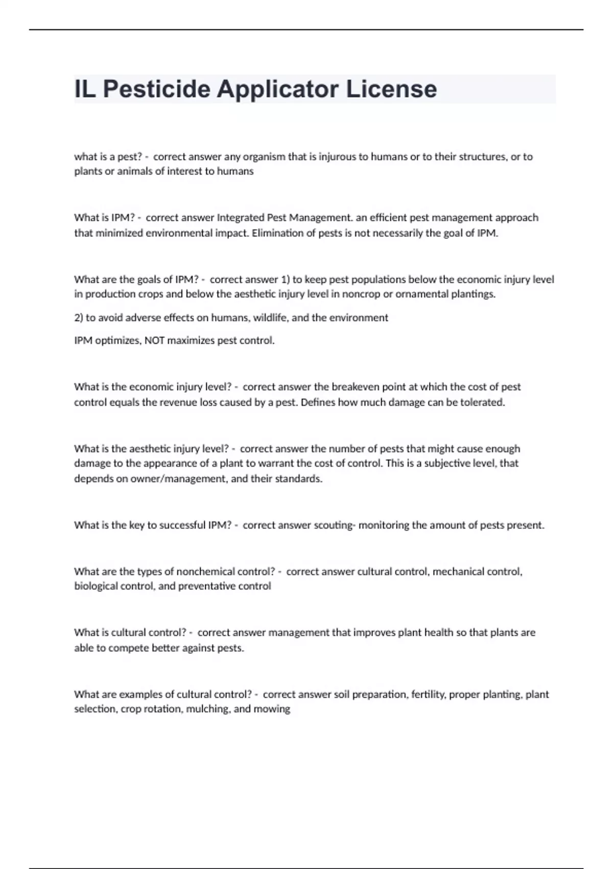 IL Pesticide Applicator License questions and answers rated A+ 2024